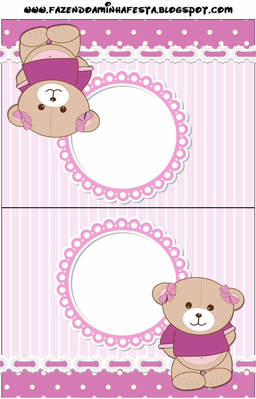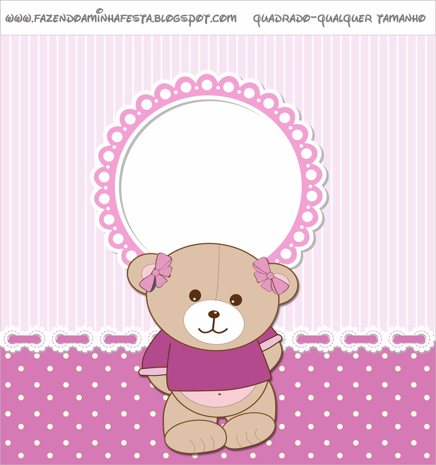 Ursinha – Kit Completo com molduras para convites, rótulos para guloseimas, lembrancinhas e imagens!