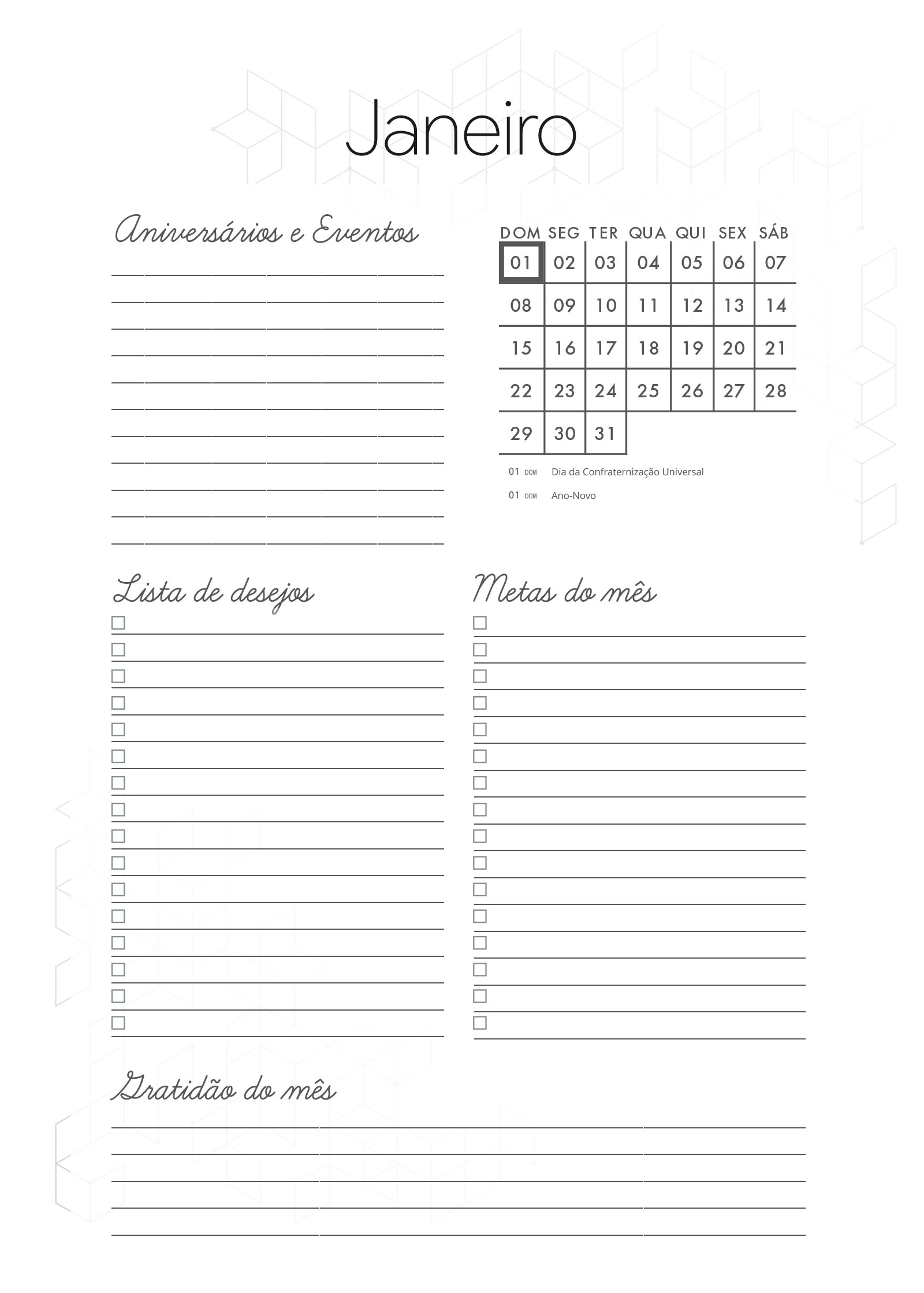 Planner Minimalista Xadrez Agenda Janeiro Por Aline Gasda - out 23, 2022 -Atualizado em: mar 6, 2024 - 0 Comentários - 1 min. leitura Baixar imagemPlanner Minimalista Xadrez Agenda JaneiroAssinar blog por e-mailDigite seu endereço de e-mail para assinar este blog e receber notificações de novas publicações por e-mail. Endereço de e-mail Assinar Você também pode gostar de... Planner Professor 2025 – Arquivo Digital – Download Grátis Planner Autismo 2025 – Modelo Grátis + 100 páginas! Planner Colorido 2025 para Imprimir – Download Grátis Planner 2025 para Imprimir Grátis – Tudo o que você precisa sobre! Planner Minnie 2025 – Grátis para Imprimir Planner Snoopy 2025 para Imprimir Aline Gasda Sócia fundadora, professora, apaixonada pela alegria mágica e contagiante do sorriso de uma criança. COMPARTILHE: Facebook WhatsApp WhatsApp Pesquisar por: Publicidade