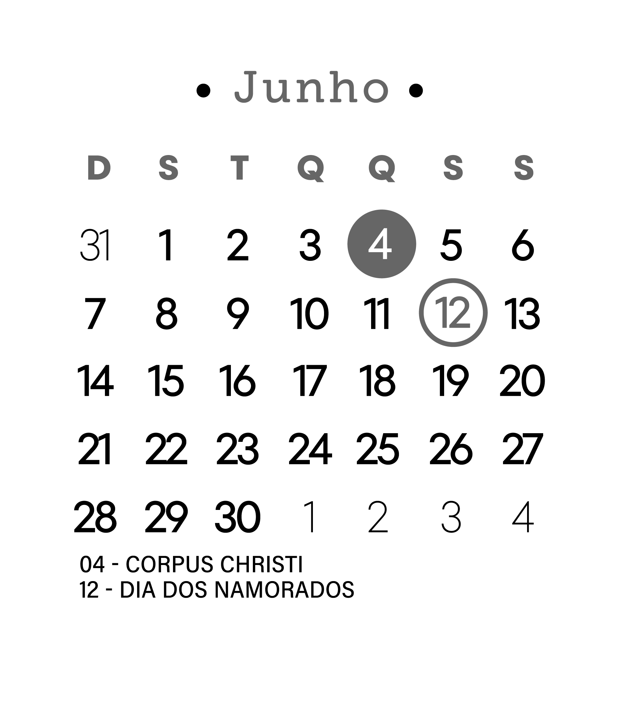 Calendario 2026 Junho Por Aline Gasda - dez 18, 2025 - 0 Comentários - 1 min. leitura Baixar imagemCalendario 2026 JunhoVocê também pode gostar de... Calendário de 2025 com Feriados para Imprimir Calendário 2024 + de 10 Modelos para Imprimir Grátis Calendário de Mesa 2023 Natal com Bolinha Grátis para Baixar Calendário 2023 para Imprimir Grátis Calendário 2021 Personalizado com Foto de Natal Calendário 2021 para Imprimir Grátis Aline Gasda Sócia fundadora, professora, apaixonada pela alegria mágica e contagiante do sorriso de uma criança. COMPARTILHE: Facebook WhatsApp WhatsApp Assinar blog por e-mailDigite seu endereço de e-mail para assinar este blog e receber notificações de novas publicações por e-mail. Endereço de e-mail Assinar Pesquisar por: Publicidade