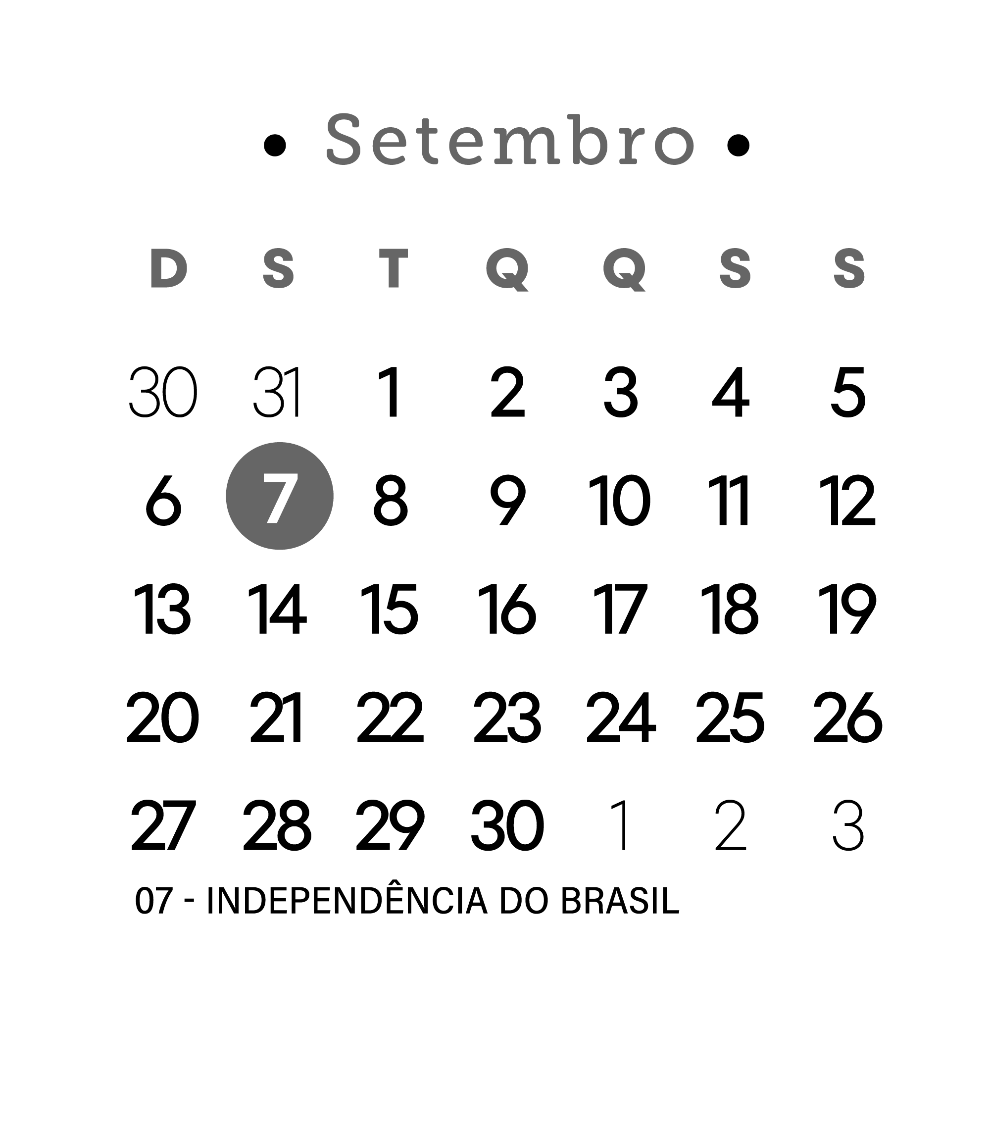 Calendario 2026 Setembro Por Aline Gasda - dez 18, 2025 - 0 Comentários - 1 min. leitura Baixar imagemCalendario 2026 SetembroVocê também pode gostar de... Calendário de 2025 com Feriados para Imprimir Calendário 2024 + de 10 Modelos para Imprimir Grátis Calendário de Mesa 2023 Natal com Bolinha Grátis para Baixar Calendário 2023 para Imprimir Grátis Calendário 2021 Personalizado com Foto de Natal Calendário 2021 para Imprimir Grátis Aline Gasda Sócia fundadora, professora, apaixonada pela alegria mágica e contagiante do sorriso de uma criança. COMPARTILHE: Facebook WhatsApp WhatsApp Assinar blog por e-mailDigite seu endereço de e-mail para assinar este blog e receber notificações de novas publicações por e-mail. Endereço de e-mail Assinar Pesquisar por: Publicidade