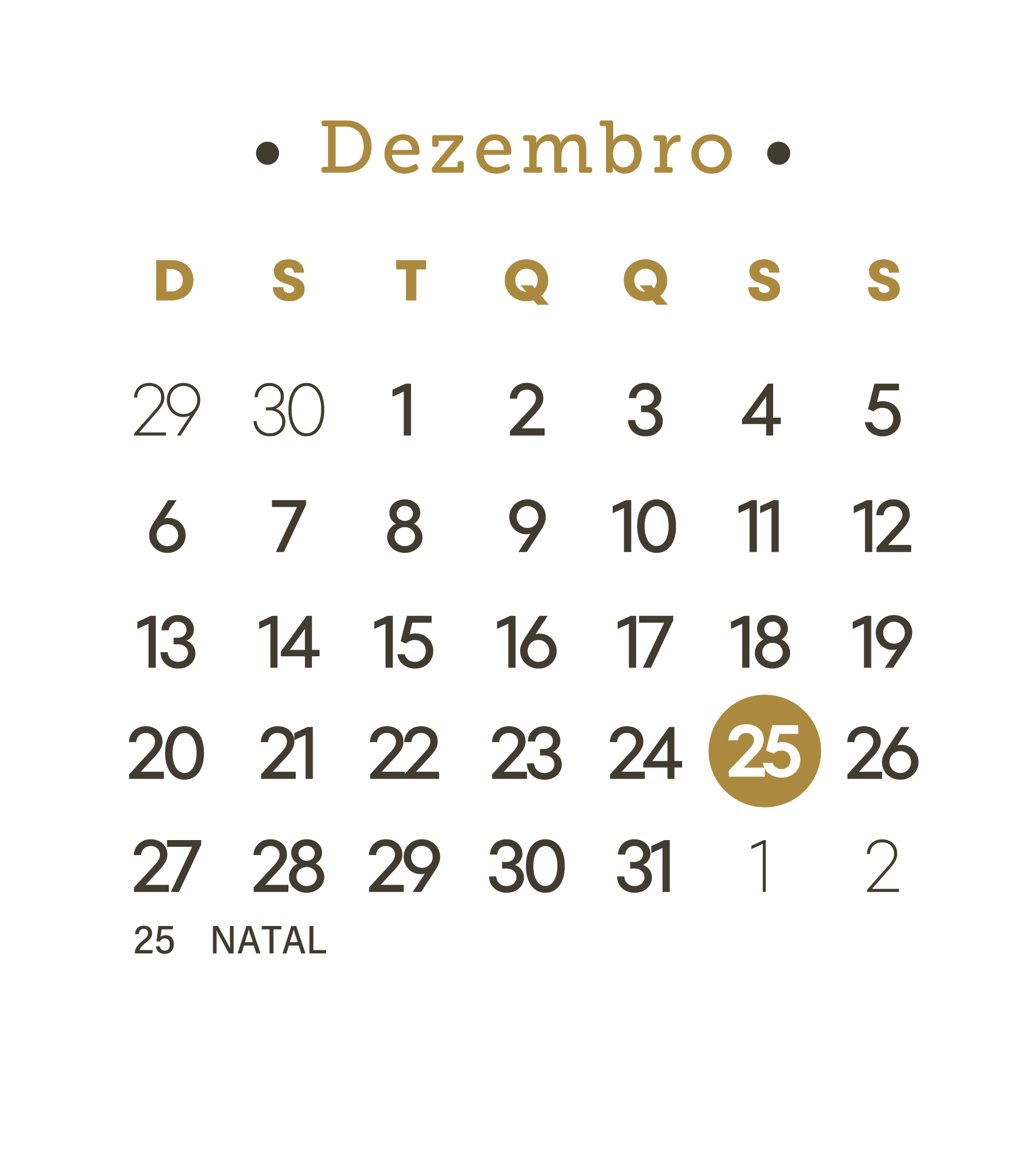 Calendario Dezembro 2026 Por Aline Gasda - dez 18, 2025 - 0 Comentários - 1 min. leitura Baixar imagemCalendario Dezembro 2026Você também pode gostar de... Calendário de 2025 com Feriados para Imprimir Calendário 2024 + de 10 Modelos para Imprimir Grátis Calendário de Mesa 2023 Natal com Bolinha Grátis para Baixar Calendário 2023 para Imprimir Grátis Calendário 2021 Personalizado com Foto de Natal Calendário 2021 para Imprimir Grátis Aline Gasda Sócia fundadora, professora, apaixonada pela alegria mágica e contagiante do sorriso de uma criança. COMPARTILHE: Facebook WhatsApp WhatsApp Assinar blog por e-mailDigite seu endereço de e-mail para assinar este blog e receber notificações de novas publicações por e-mail. Endereço de e-mail Assinar Pesquisar por: Publicidade