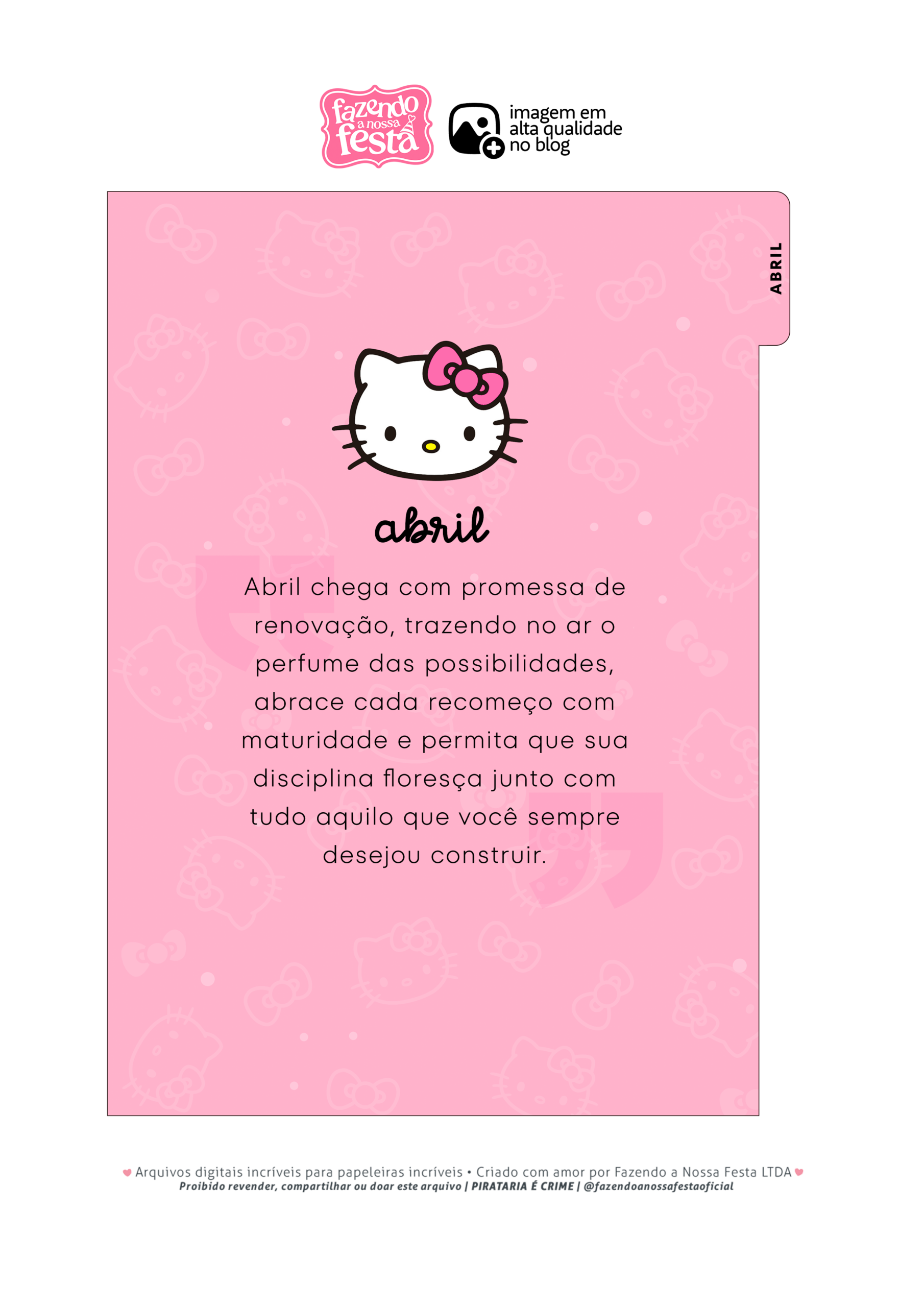 4 Planner Hello Kitty Capa de ABRIL Por Aline Gasda - dez 16, 2025 - 0 Comentários - 1 min. leitura Baixar imagem4 Planner Hello Kitty Capa de ABRILAssinar blog por e-mailDigite seu endereço de e-mail para assinar este blog e receber notificações de novas publicações por e-mail. Endereço de e-mail Assinar Você também pode gostar de... Planner Professor 2025 – Arquivo Digital – Download Grátis Planner 2025 Xadrez Minimalista para Imprimir – Download Grátis Planner Autismo 2025 – Modelo Grátis + 100 páginas! Planner Colorido 2025 para Imprimir – Download Grátis Planner 2025 para Imprimir Grátis – Tudo o que você precisa sobre! Planner Minnie 2025 – Grátis para Imprimir Aline Gasda Sócia fundadora, professora, apaixonada pela alegria mágica e contagiante do sorriso de uma criança. COMPARTILHE: Facebook WhatsApp WhatsApp Pesquisar por: Publicidade