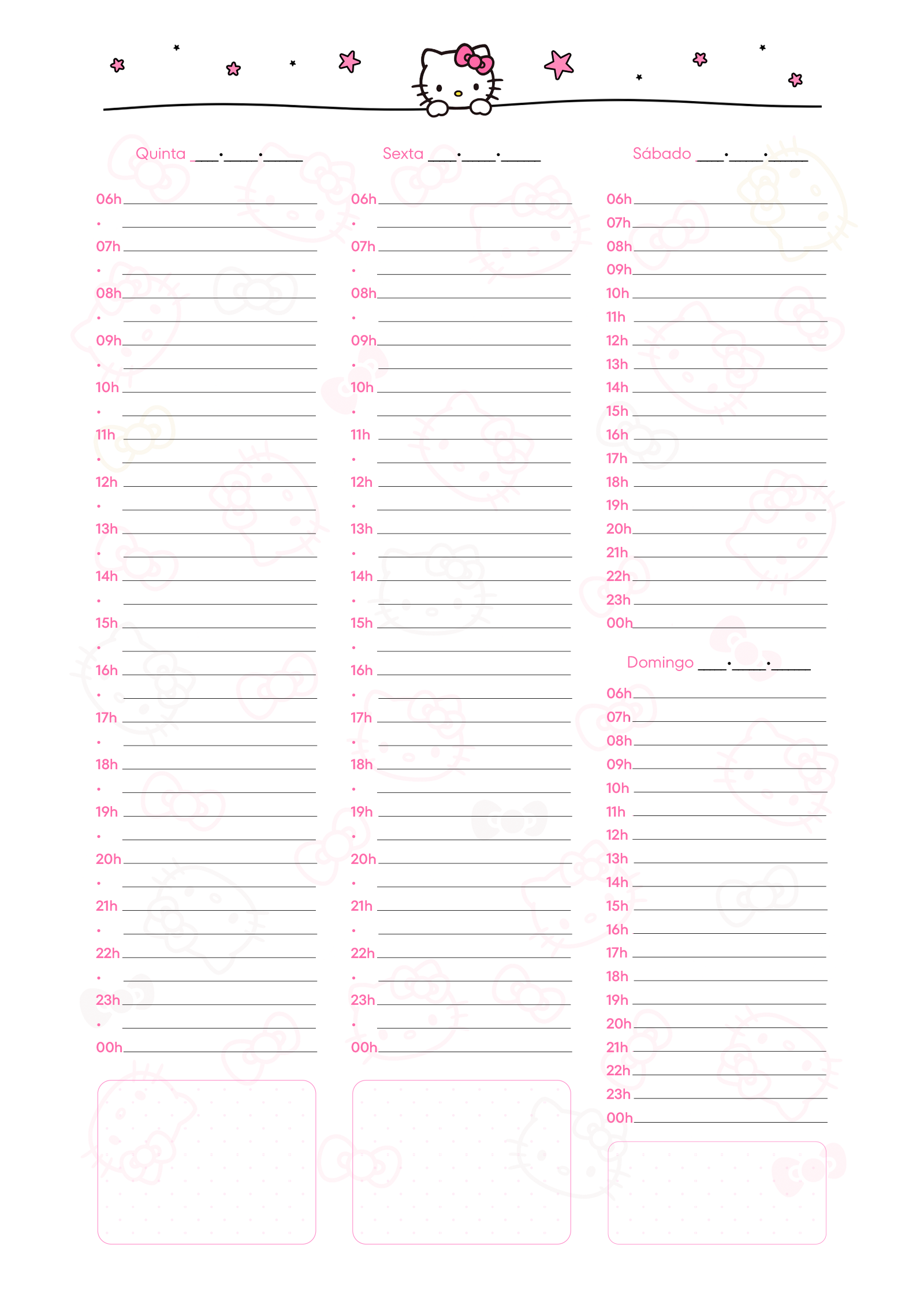 Planner Hello Kitty Agenda Semanal Pagina QUI SEX SAB DOM Por Aline Gasda - dez 16, 2025 - 0 Comentários - 1 min. leitura Baixar imagemPlanner Hello Kitty Agenda Semanal Pagina QUI SEX SAB DOMAssinar blog por e-mailDigite seu endereço de e-mail para assinar este blog e receber notificações de novas publicações por e-mail. Endereço de e-mail Assinar Você também pode gostar de... Planner Professor 2025 – Arquivo Digital – Download Grátis Planner 2025 Xadrez Minimalista para Imprimir – Download Grátis Planner Autismo 2025 – Modelo Grátis + 100 páginas! Planner Colorido 2025 para Imprimir – Download Grátis Planner 2025 para Imprimir Grátis – Tudo o que você precisa sobre! Planner Minnie 2025 – Grátis para Imprimir Aline Gasda Sócia fundadora, professora, apaixonada pela alegria mágica e contagiante do sorriso de uma criança. COMPARTILHE: Facebook WhatsApp WhatsApp Pesquisar por: Publicidade