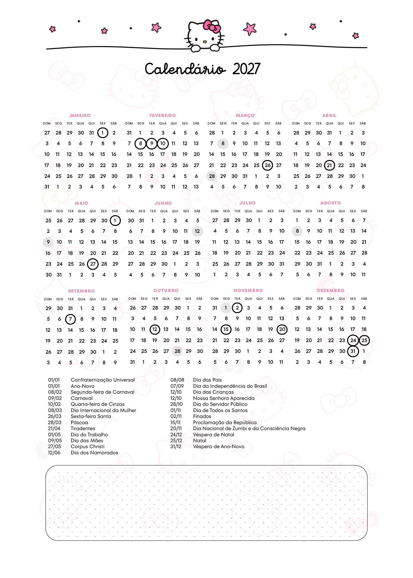 Planner Hello Kitty Calendario 2027 Por Aline Gasda - dez 16, 2025 - 0 Comentários - 1 min. leitura Baixar imagemPlanner Hello Kitty Calendario 2027Assinar blog por e-mailDigite seu endereço de e-mail para assinar este blog e receber notificações de novas publicações por e-mail. Endereço de e-mail Assinar Você também pode gostar de... Planner Professor 2025 – Arquivo Digital – Download Grátis Planner 2025 Xadrez Minimalista para Imprimir – Download Grátis Planner Autismo 2025 – Modelo Grátis + 100 páginas! Planner Colorido 2025 para Imprimir – Download Grátis Planner 2025 para Imprimir Grátis – Tudo o que você precisa sobre! Planner Minnie 2025 – Grátis para Imprimir Aline Gasda Sócia fundadora, professora, apaixonada pela alegria mágica e contagiante do sorriso de uma criança. COMPARTILHE: Facebook WhatsApp WhatsApp Pesquisar por: Publicidade