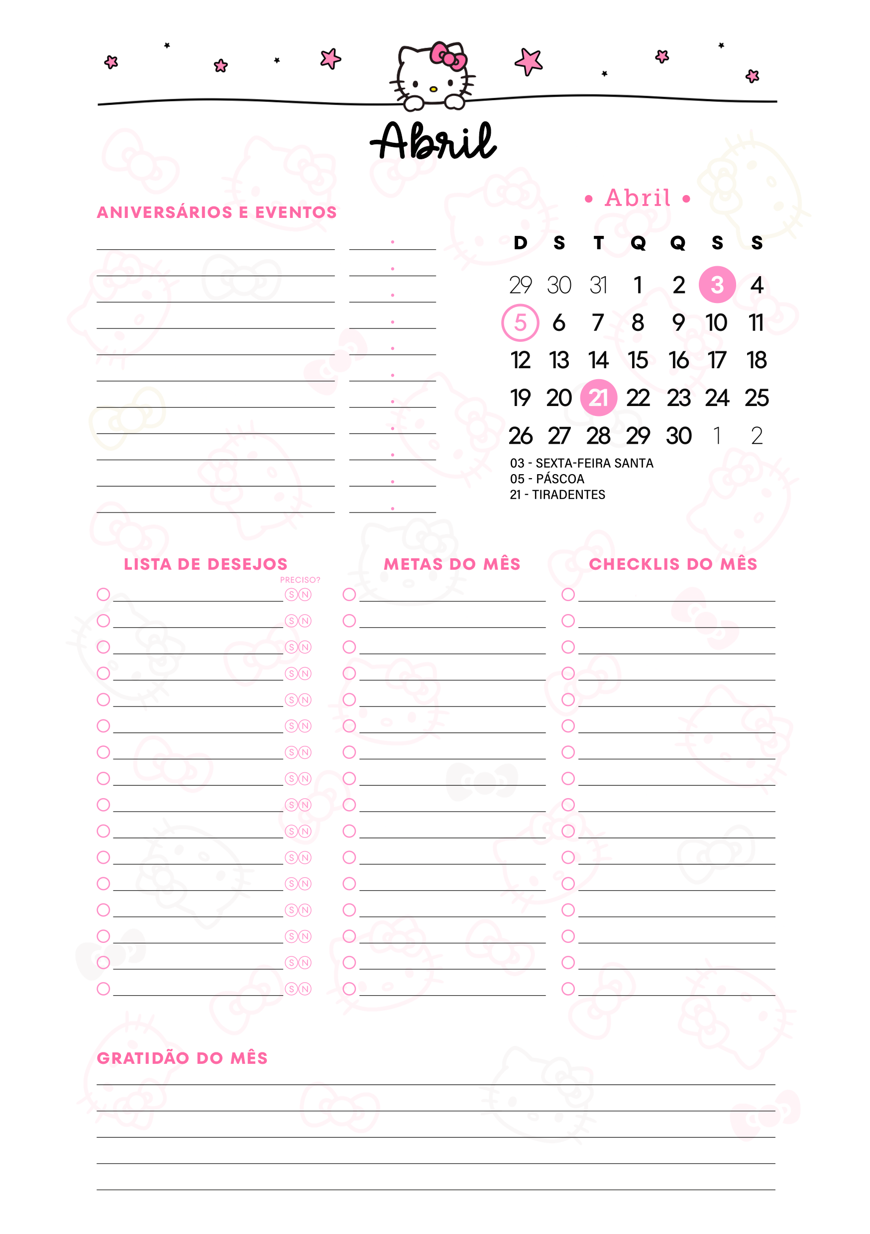 Planner Hello Kitty Calendario Mensal Abril Por Aline Gasda - dez 16, 2025 - 0 Comentários - 1 min. leitura Baixar imagemPlanner Hello Kitty Calendario Mensal AbrilAssinar blog por e-mailDigite seu endereço de e-mail para assinar este blog e receber notificações de novas publicações por e-mail. Endereço de e-mail Assinar Você também pode gostar de... Planner Professor 2025 – Arquivo Digital – Download Grátis Planner 2025 Xadrez Minimalista para Imprimir – Download Grátis Planner Autismo 2025 – Modelo Grátis + 100 páginas! Planner Colorido 2025 para Imprimir – Download Grátis Planner 2025 para Imprimir Grátis – Tudo o que você precisa sobre! Planner Minnie 2025 – Grátis para Imprimir Aline Gasda Sócia fundadora, professora, apaixonada pela alegria mágica e contagiante do sorriso de uma criança. COMPARTILHE: Facebook WhatsApp WhatsApp Pesquisar por: Publicidade