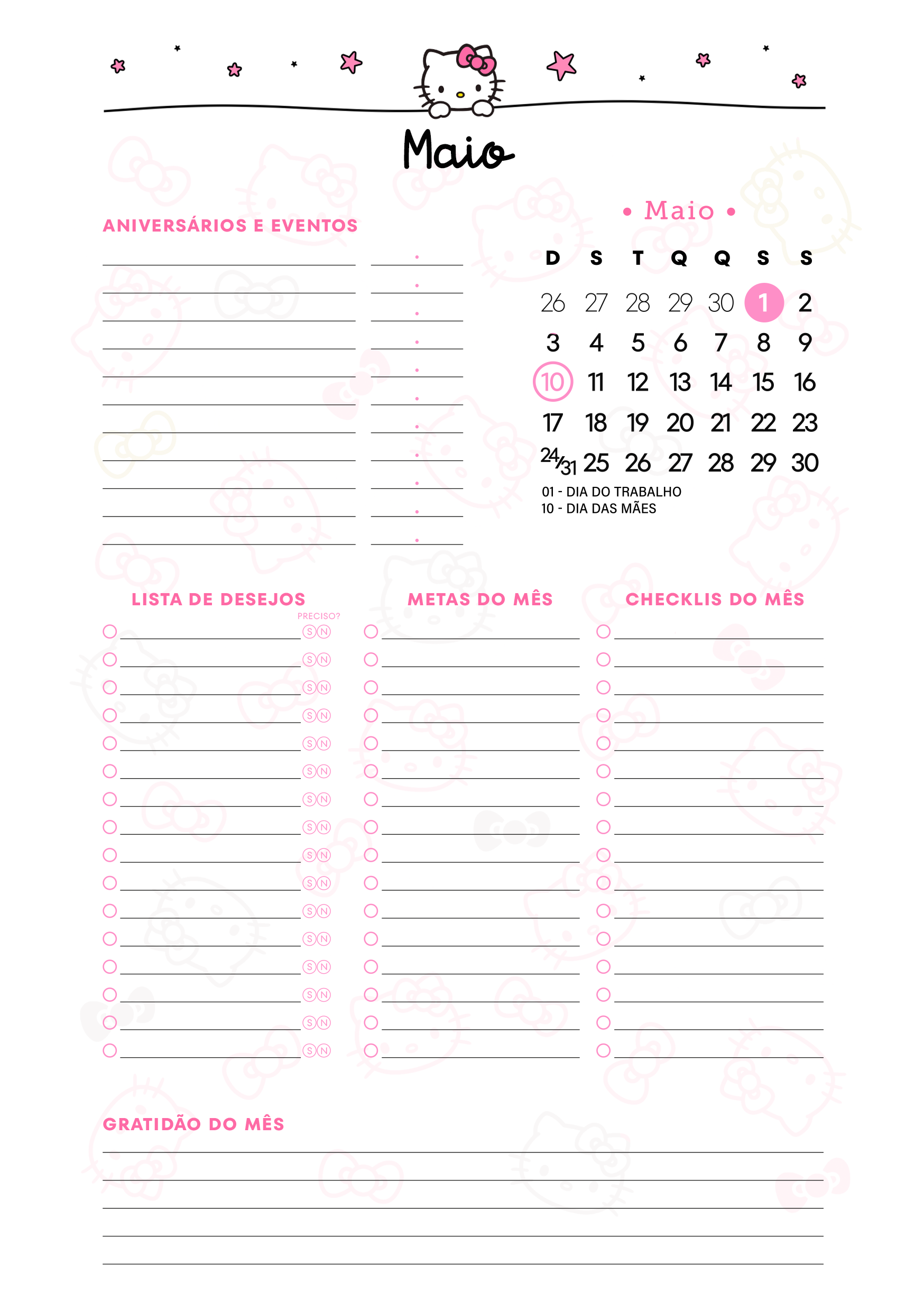 Planner Hello Kitty Calendario Mensal Maio Por Aline Gasda - dez 16, 2025 - 0 Comentários - 1 min. leitura Baixar imagemPlanner Hello Kitty Calendario Mensal MaioAssinar blog por e-mailDigite seu endereço de e-mail para assinar este blog e receber notificações de novas publicações por e-mail. Endereço de e-mail Assinar Você também pode gostar de... Planner Professor 2025 – Arquivo Digital – Download Grátis Planner 2025 Xadrez Minimalista para Imprimir – Download Grátis Planner Autismo 2025 – Modelo Grátis + 100 páginas! Planner Colorido 2025 para Imprimir – Download Grátis Planner 2025 para Imprimir Grátis – Tudo o que você precisa sobre! Planner Minnie 2025 – Grátis para Imprimir Aline Gasda Sócia fundadora, professora, apaixonada pela alegria mágica e contagiante do sorriso de uma criança. COMPARTILHE: Facebook WhatsApp WhatsApp Pesquisar por: Publicidade