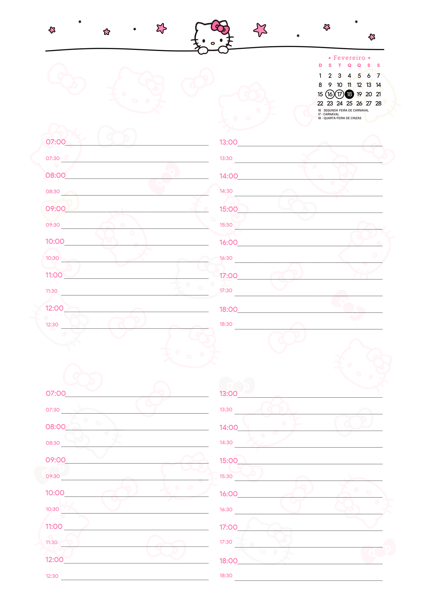 Planner Hello Kitty Fevereiro Miolo Agenda Sabado e Domingo Por Aline Gasda - dez 16, 2025 - 0 Comentários - 1 min. leitura Baixar imagemPlanner Hello Kitty Fevereiro Miolo Agenda Sabado e DomingoAssinar blog por e-mailDigite seu endereço de e-mail para assinar este blog e receber notificações de novas publicações por e-mail. Endereço de e-mail Assinar Você também pode gostar de... Planner Professor 2025 – Arquivo Digital – Download Grátis Planner 2025 Xadrez Minimalista para Imprimir – Download Grátis Planner Autismo 2025 – Modelo Grátis + 100 páginas! Planner Colorido 2025 para Imprimir – Download Grátis Planner 2025 para Imprimir Grátis – Tudo o que você precisa sobre! Planner Minnie 2025 – Grátis para Imprimir Aline Gasda Sócia fundadora, professora, apaixonada pela alegria mágica e contagiante do sorriso de uma criança. COMPARTILHE: Facebook WhatsApp WhatsApp Pesquisar por: Publicidade