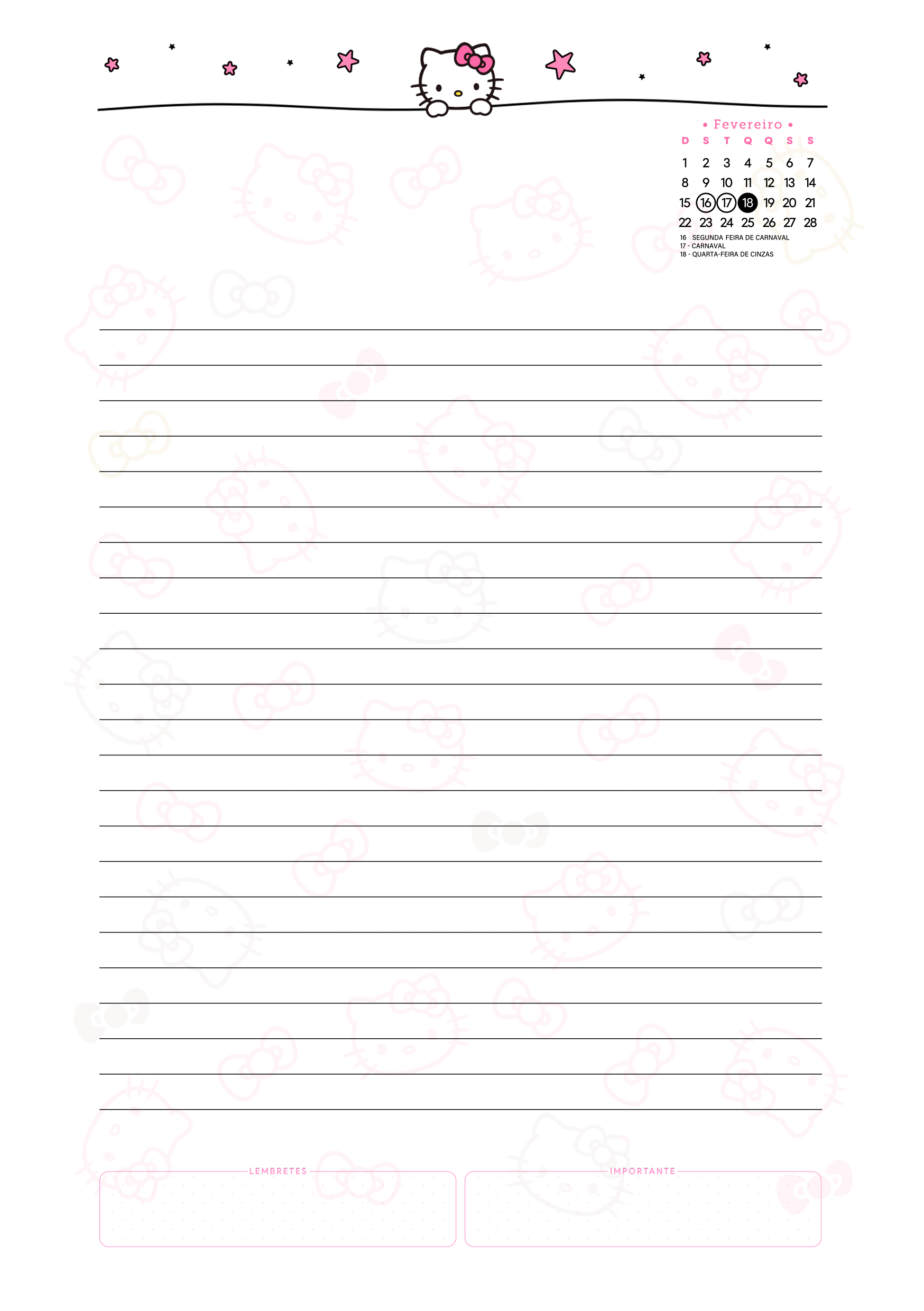 Planner Hello Kitty Fevereiro Permanente Miolo Agenda sem Hora Por Aline Gasda - dez 16, 2025 - 0 Comentários - 1 min. leitura Baixar imagemPlanner Hello Kitty Fevereiro Permanente Miolo Agenda sem HoraAssinar blog por e-mailDigite seu endereço de e-mail para assinar este blog e receber notificações de novas publicações por e-mail. Endereço de e-mail Assinar Você também pode gostar de... Planner Professor 2025 – Arquivo Digital – Download Grátis Planner 2025 Xadrez Minimalista para Imprimir – Download Grátis Planner Autismo 2025 – Modelo Grátis + 100 páginas! Planner Colorido 2025 para Imprimir – Download Grátis Planner 2025 para Imprimir Grátis – Tudo o que você precisa sobre! Planner Minnie 2025 – Grátis para Imprimir Aline Gasda Sócia fundadora, professora, apaixonada pela alegria mágica e contagiante do sorriso de uma criança. COMPARTILHE: Facebook WhatsApp WhatsApp Pesquisar por: Publicidade