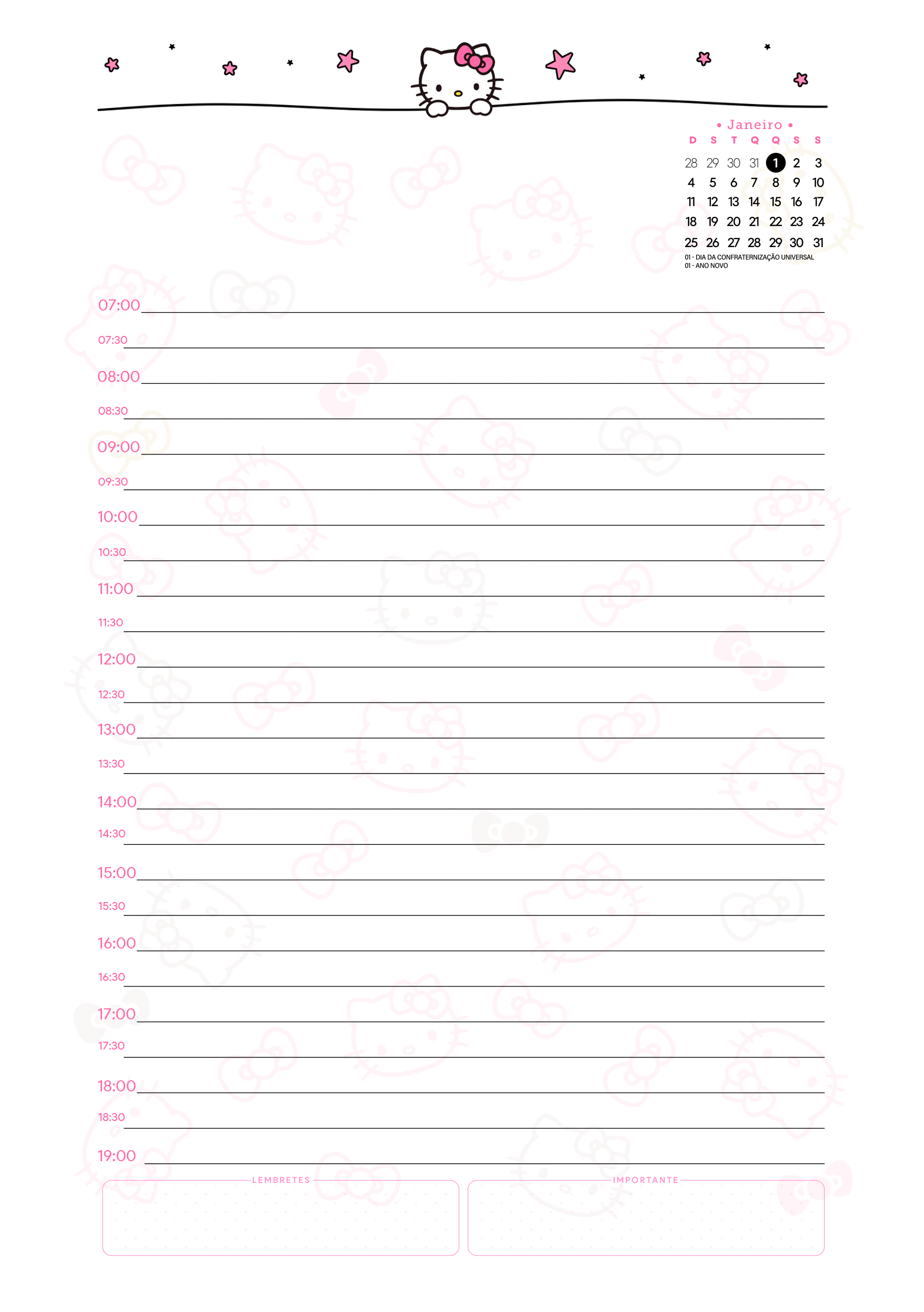 Planner Hello Kitty Janeiro Miolo Agenda Por Aline Gasda - dez 16, 2025 - 0 Comentários - 1 min. leitura Baixar imagemPlanner Hello Kitty Janeiro Miolo AgendaAssinar blog por e-mailDigite seu endereço de e-mail para assinar este blog e receber notificações de novas publicações por e-mail. Endereço de e-mail Assinar Você também pode gostar de... Planner Professor 2025 – Arquivo Digital – Download Grátis Planner 2025 Xadrez Minimalista para Imprimir – Download Grátis Planner Autismo 2025 – Modelo Grátis + 100 páginas! Planner Colorido 2025 para Imprimir – Download Grátis Planner 2025 para Imprimir Grátis – Tudo o que você precisa sobre! Planner Minnie 2025 – Grátis para Imprimir Aline Gasda Sócia fundadora, professora, apaixonada pela alegria mágica e contagiante do sorriso de uma criança. COMPARTILHE: Facebook WhatsApp WhatsApp Pesquisar por: Publicidade