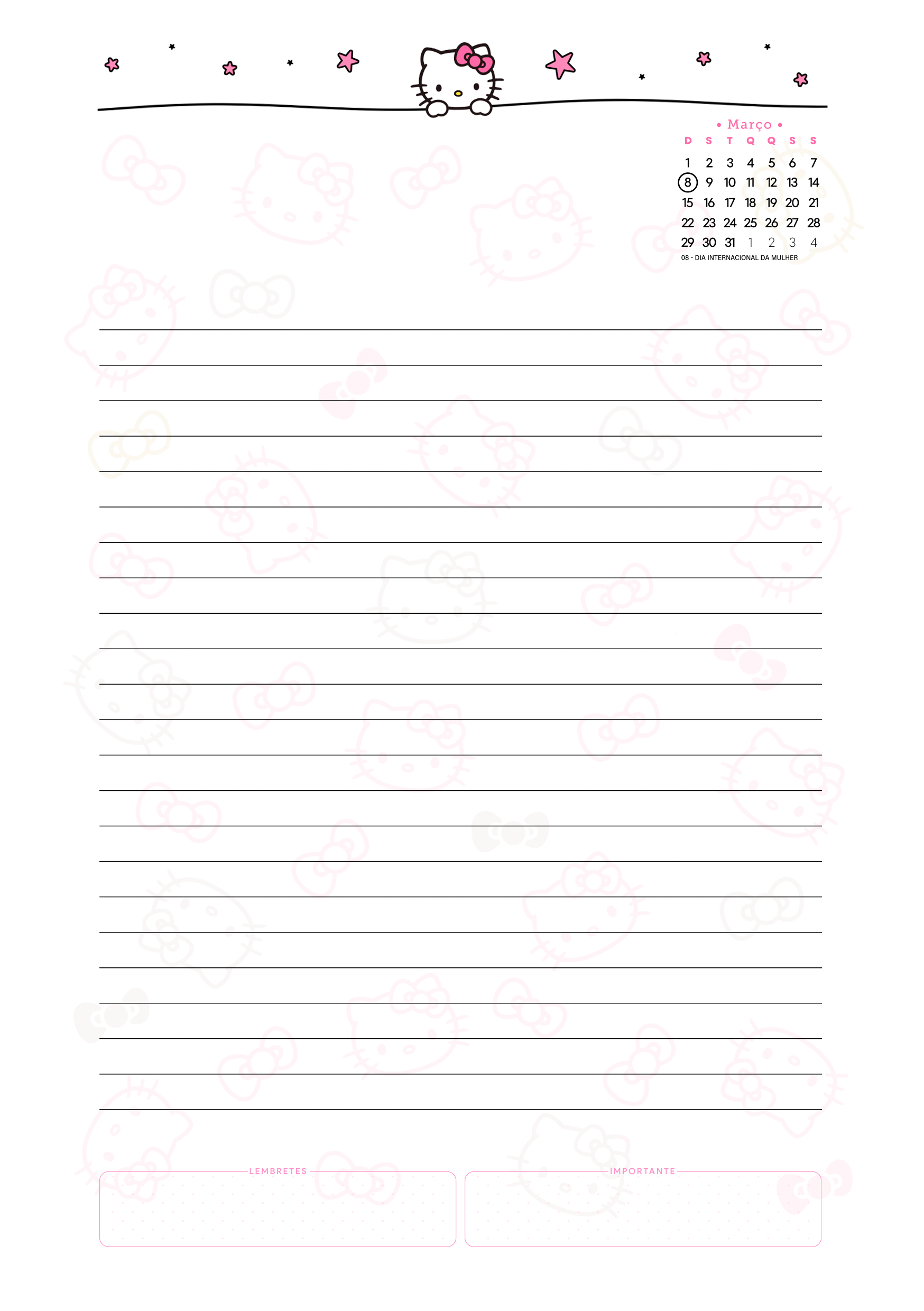 Planner Hello Kitty Marco Permanente Miolo Agenda sem Hora Por Aline Gasda - dez 16, 2025 - 0 Comentários - 1 min. leitura Baixar imagemPlanner Hello Kitty Marco Permanente Miolo Agenda sem HoraAssinar blog por e-mailDigite seu endereço de e-mail para assinar este blog e receber notificações de novas publicações por e-mail. Endereço de e-mail Assinar Você também pode gostar de... Planner Professor 2025 – Arquivo Digital – Download Grátis Planner 2025 Xadrez Minimalista para Imprimir – Download Grátis Planner Autismo 2025 – Modelo Grátis + 100 páginas! Planner Colorido 2025 para Imprimir – Download Grátis Planner 2025 para Imprimir Grátis – Tudo o que você precisa sobre! Planner Minnie 2025 – Grátis para Imprimir Aline Gasda Sócia fundadora, professora, apaixonada pela alegria mágica e contagiante do sorriso de uma criança. COMPARTILHE: Facebook WhatsApp WhatsApp Pesquisar por: Publicidade