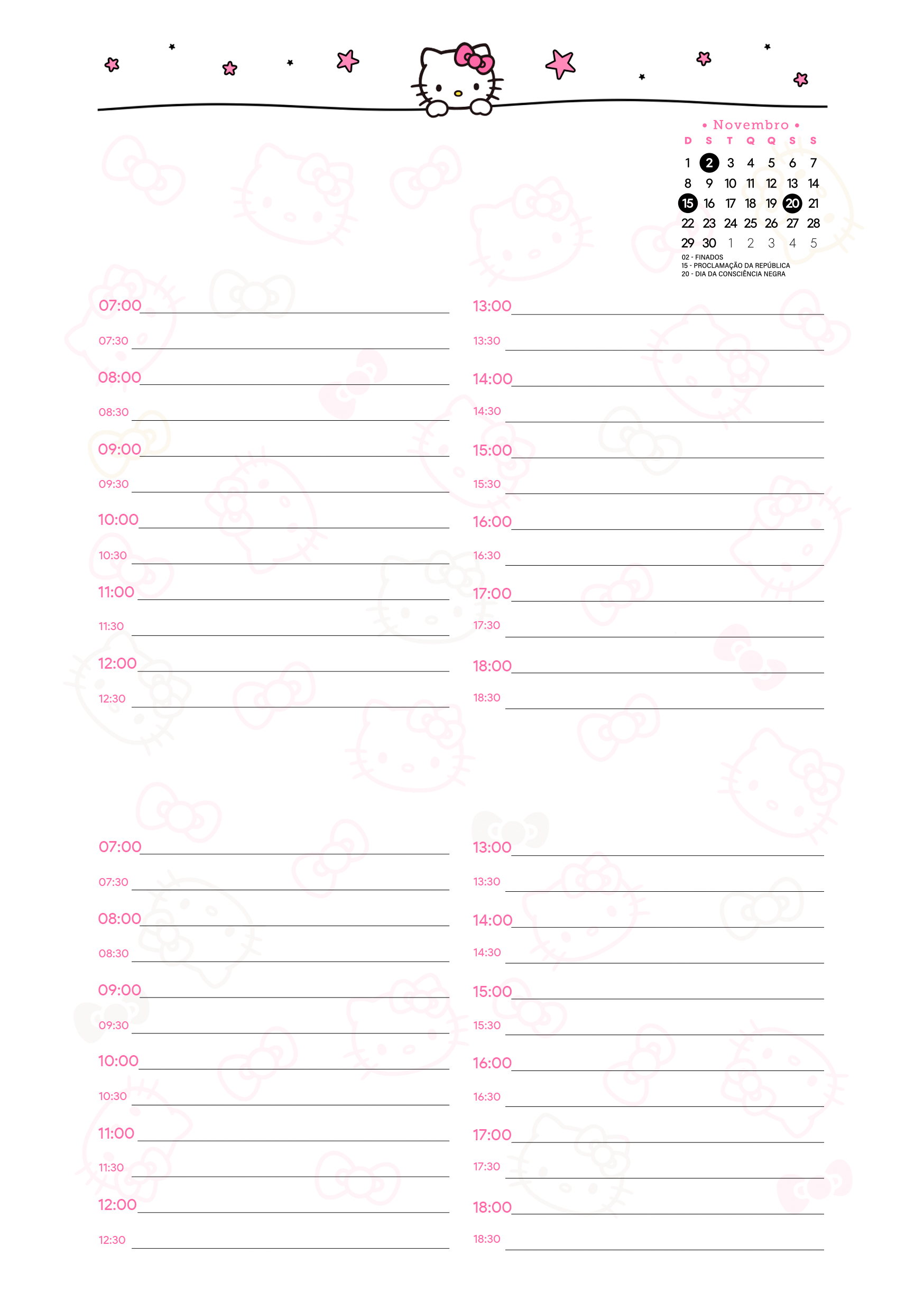 Planner Hello Kitty Novembro Miolo Agenda Sabado e Domingo Por Aline Gasda - dez 16, 2025 - 0 Comentários - 1 min. leitura Baixar imagemPlanner Hello Kitty Novembro Miolo Agenda Sabado e DomingoAssinar blog por e-mailDigite seu endereço de e-mail para assinar este blog e receber notificações de novas publicações por e-mail. Endereço de e-mail Assinar Você também pode gostar de... Planner Professor 2025 – Arquivo Digital – Download Grátis Planner 2025 Xadrez Minimalista para Imprimir – Download Grátis Planner Autismo 2025 – Modelo Grátis + 100 páginas! Planner Colorido 2025 para Imprimir – Download Grátis Planner 2025 para Imprimir Grátis – Tudo o que você precisa sobre! Planner Minnie 2025 – Grátis para Imprimir Aline Gasda Sócia fundadora, professora, apaixonada pela alegria mágica e contagiante do sorriso de uma criança. COMPARTILHE: Facebook WhatsApp WhatsApp Pesquisar por: Publicidade