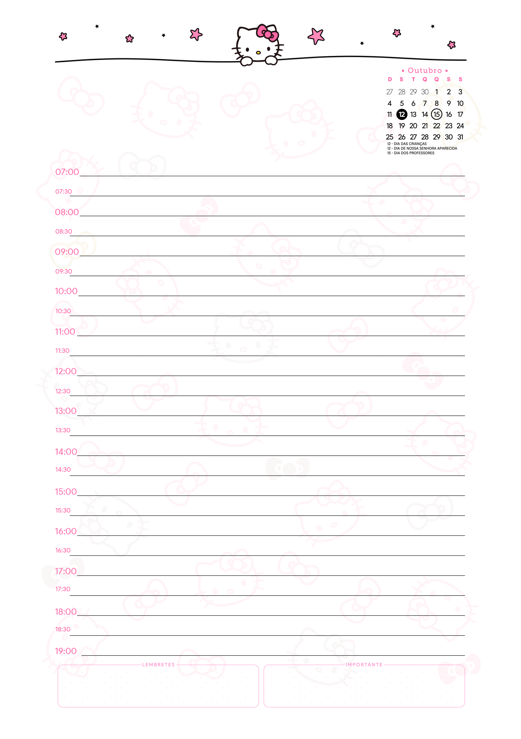 Planner Hello Kitty Outubro Miolo Agenda Por Aline Gasda - dez 16, 2025 - 0 Comentários - 1 min. leitura Baixar imagemPlanner Hello Kitty Outubro Miolo AgendaAssinar blog por e-mailDigite seu endereço de e-mail para assinar este blog e receber notificações de novas publicações por e-mail. Endereço de e-mail Assinar Você também pode gostar de... Planner Professor 2025 – Arquivo Digital – Download Grátis Planner 2025 Xadrez Minimalista para Imprimir – Download Grátis Planner Autismo 2025 – Modelo Grátis + 100 páginas! Planner Colorido 2025 para Imprimir – Download Grátis Planner 2025 para Imprimir Grátis – Tudo o que você precisa sobre! Planner Minnie 2025 – Grátis para Imprimir Aline Gasda Sócia fundadora, professora, apaixonada pela alegria mágica e contagiante do sorriso de uma criança. COMPARTILHE: Facebook WhatsApp WhatsApp Pesquisar por: Publicidade