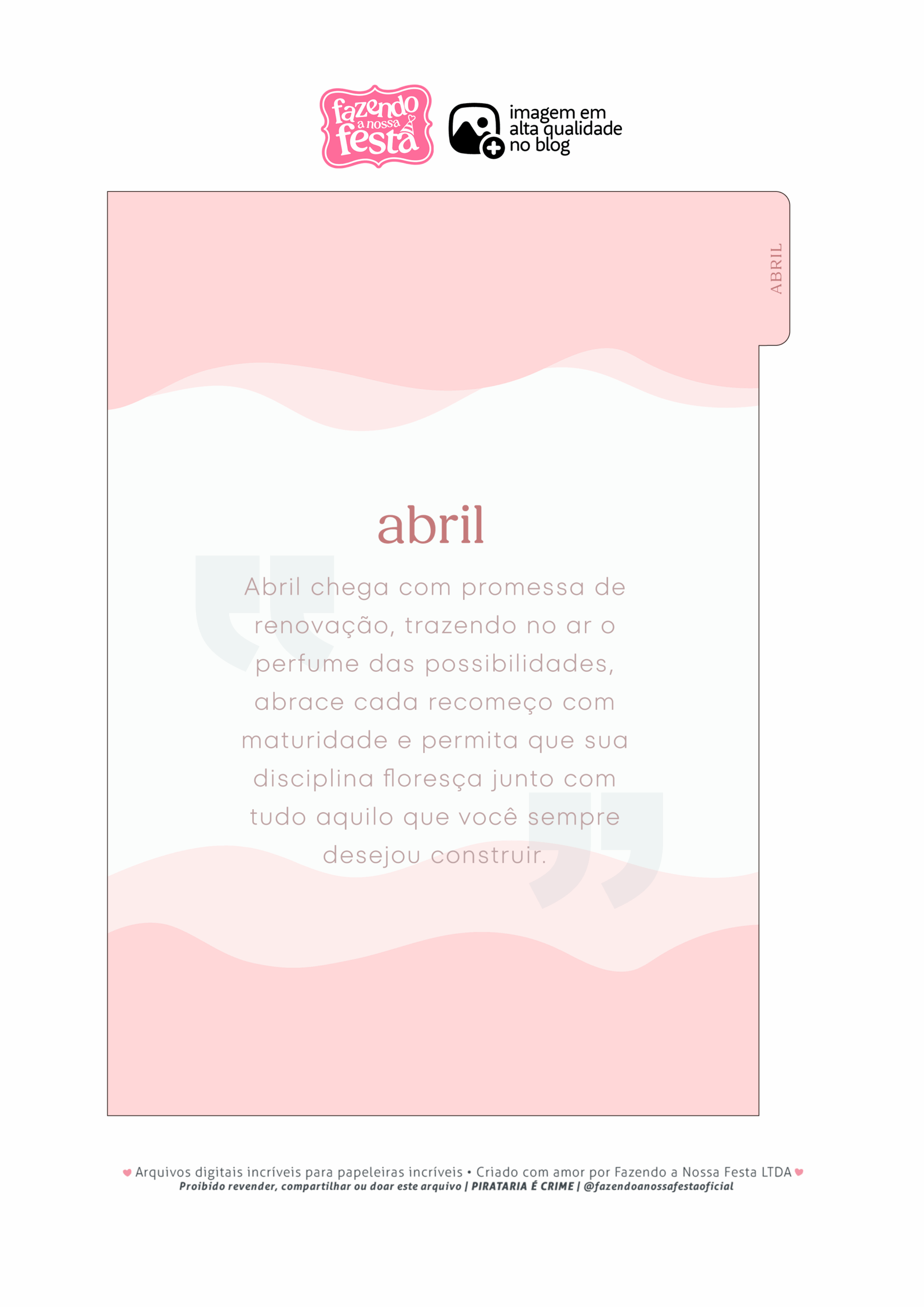 Planner Tons Pasteis Capa de ABRIL Por Aline Gasda - dez 21, 2025 - 0 Comentários - 1 min. leitura Baixar imagemPlanner Tons Pasteis Capa de ABRILVocê também pode gostar de... Planner Stitch 2026 – Grátis para Imprimir Planner Capivara 2026 – Grátis para Imprimir Planner Colorido 2026 para Imprimir – Download Grátis Planner 2026 para Imprimir Grátis Planner Hello Kitty 2026 – Grátis para Imprimir Planner Professor 2025 – Arquivo Digital – Download Grátis Aline Gasda Sócia fundadora, professora, apaixonada pela alegria mágica e contagiante do sorriso de uma criança. COMPARTILHE: Facebook WhatsApp WhatsApp Assinar blog por e-mailDigite seu endereço de e-mail para assinar este blog e receber notificações de novas publicações por e-mail. Endereço de e-mail Assinar Pesquisar por: Publicidade