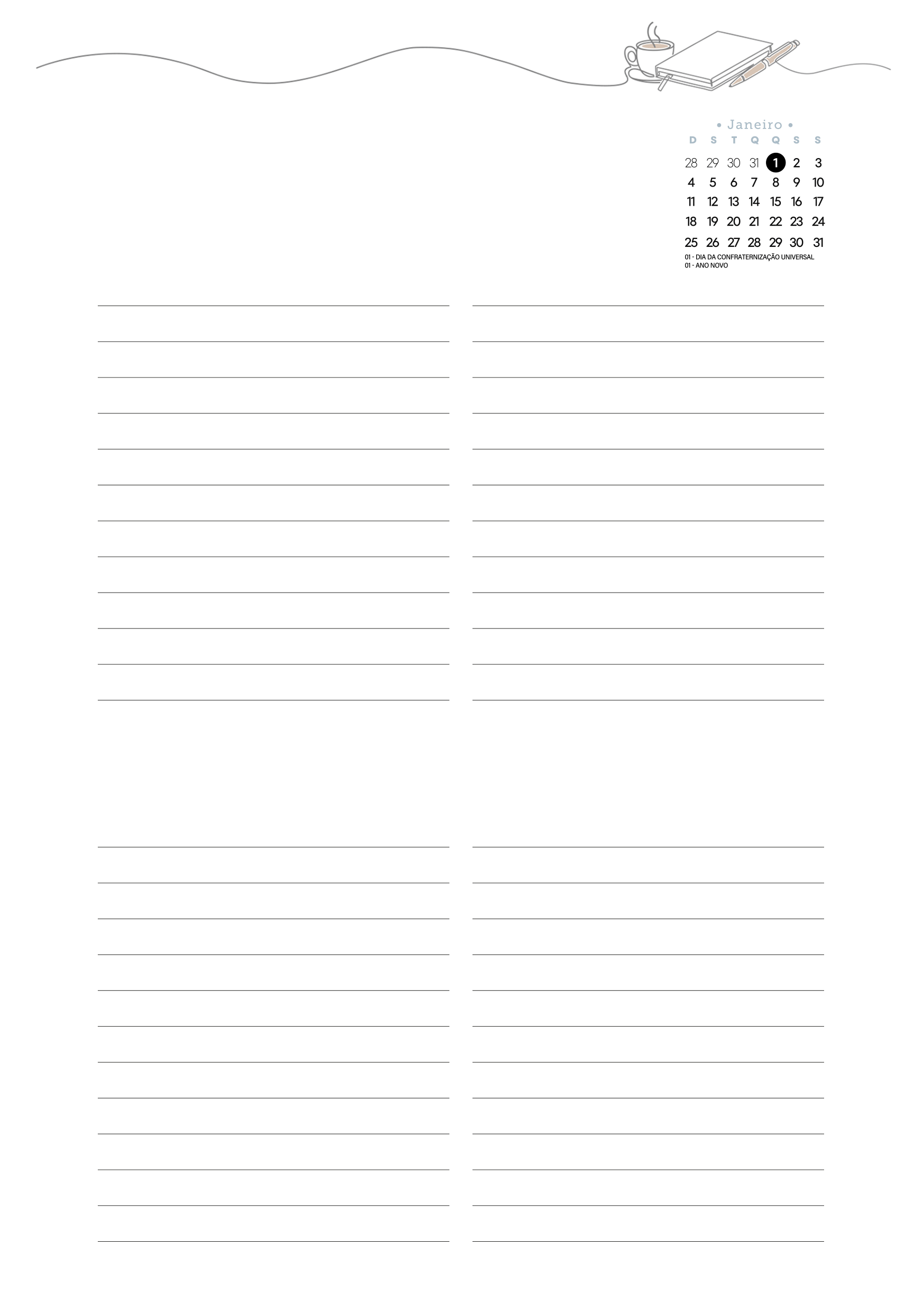Planner Tons Pasteis Janeiro Miolo Agenda Sabado e Domingo sem Hora Por Aline Gasda - dez 21, 2025 - 0 Comentários - 1 min. leitura Baixar imagemPlanner Tons Pasteis Janeiro Miolo Agenda Sabado e Domingo sem HoraVocê também pode gostar de... Planner Stitch 2026 – Grátis para Imprimir Planner Capivara 2026 – Grátis para Imprimir Planner Colorido 2026 para Imprimir – Download Grátis Planner 2026 para Imprimir Grátis Planner Hello Kitty 2026 – Grátis para Imprimir Planner Professor 2025 – Arquivo Digital – Download Grátis Aline Gasda Sócia fundadora, professora, apaixonada pela alegria mágica e contagiante do sorriso de uma criança. COMPARTILHE: Facebook WhatsApp WhatsApp Assinar blog por e-mailDigite seu endereço de e-mail para assinar este blog e receber notificações de novas publicações por e-mail. Endereço de e-mail Assinar Pesquisar por: Publicidade