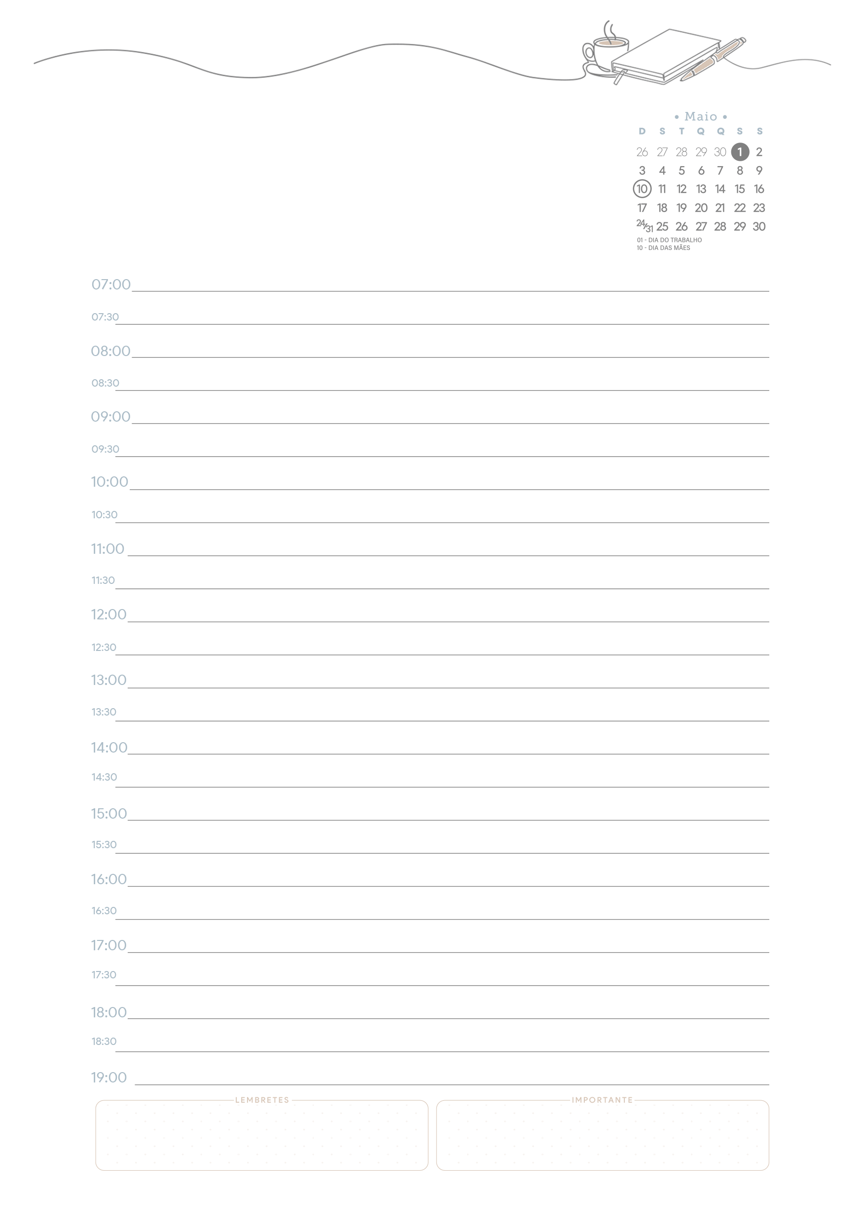 Planner Tons Pasteis Maio Miolo Agenda Por Aline Gasda - dez 21, 2025 - 0 Comentários - 1 min. leitura Baixar imagemPlanner Tons Pasteis Maio Miolo AgendaVocê também pode gostar de... Planner Stitch 2026 – Grátis para Imprimir Planner Capivara 2026 – Grátis para Imprimir Planner Colorido 2026 para Imprimir – Download Grátis Planner 2026 para Imprimir Grátis Planner Hello Kitty 2026 – Grátis para Imprimir Planner Professor 2025 – Arquivo Digital – Download Grátis Aline Gasda Sócia fundadora, professora, apaixonada pela alegria mágica e contagiante do sorriso de uma criança. COMPARTILHE: Facebook WhatsApp WhatsApp Assinar blog por e-mailDigite seu endereço de e-mail para assinar este blog e receber notificações de novas publicações por e-mail. Endereço de e-mail Assinar Pesquisar por: Publicidade