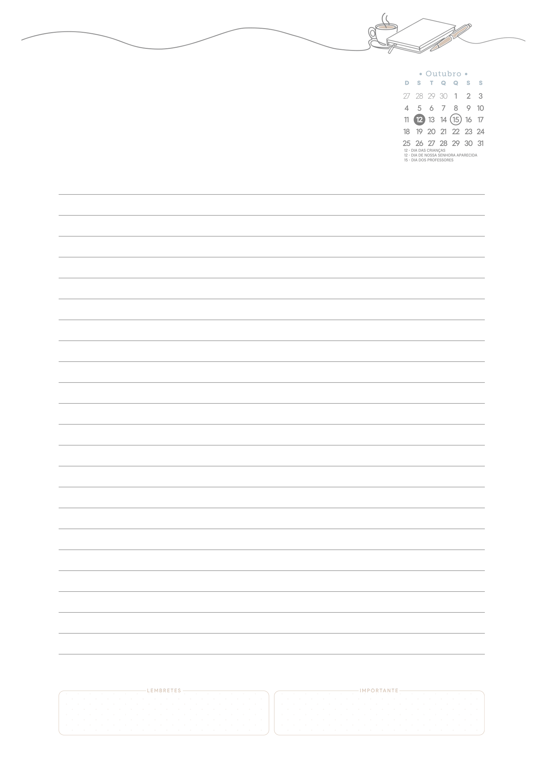 Planner Tons Pasteis Outubro Permanente Miolo Agenda sem Hora Por Aline Gasda - dez 21, 2025 - 0 Comentários - 1 min. leitura Baixar imagemPlanner Tons Pasteis Outubro Permanente Miolo Agenda sem HoraVocê também pode gostar de... Planner Stitch 2026 – Grátis para Imprimir Planner Capivara 2026 – Grátis para Imprimir Planner Colorido 2026 para Imprimir – Download Grátis Planner 2026 para Imprimir Grátis Planner Hello Kitty 2026 – Grátis para Imprimir Planner Professor 2025 – Arquivo Digital – Download Grátis Aline Gasda Sócia fundadora, professora, apaixonada pela alegria mágica e contagiante do sorriso de uma criança. COMPARTILHE: Facebook WhatsApp WhatsApp Assinar blog por e-mailDigite seu endereço de e-mail para assinar este blog e receber notificações de novas publicações por e-mail. Endereço de e-mail Assinar Pesquisar por: Publicidade