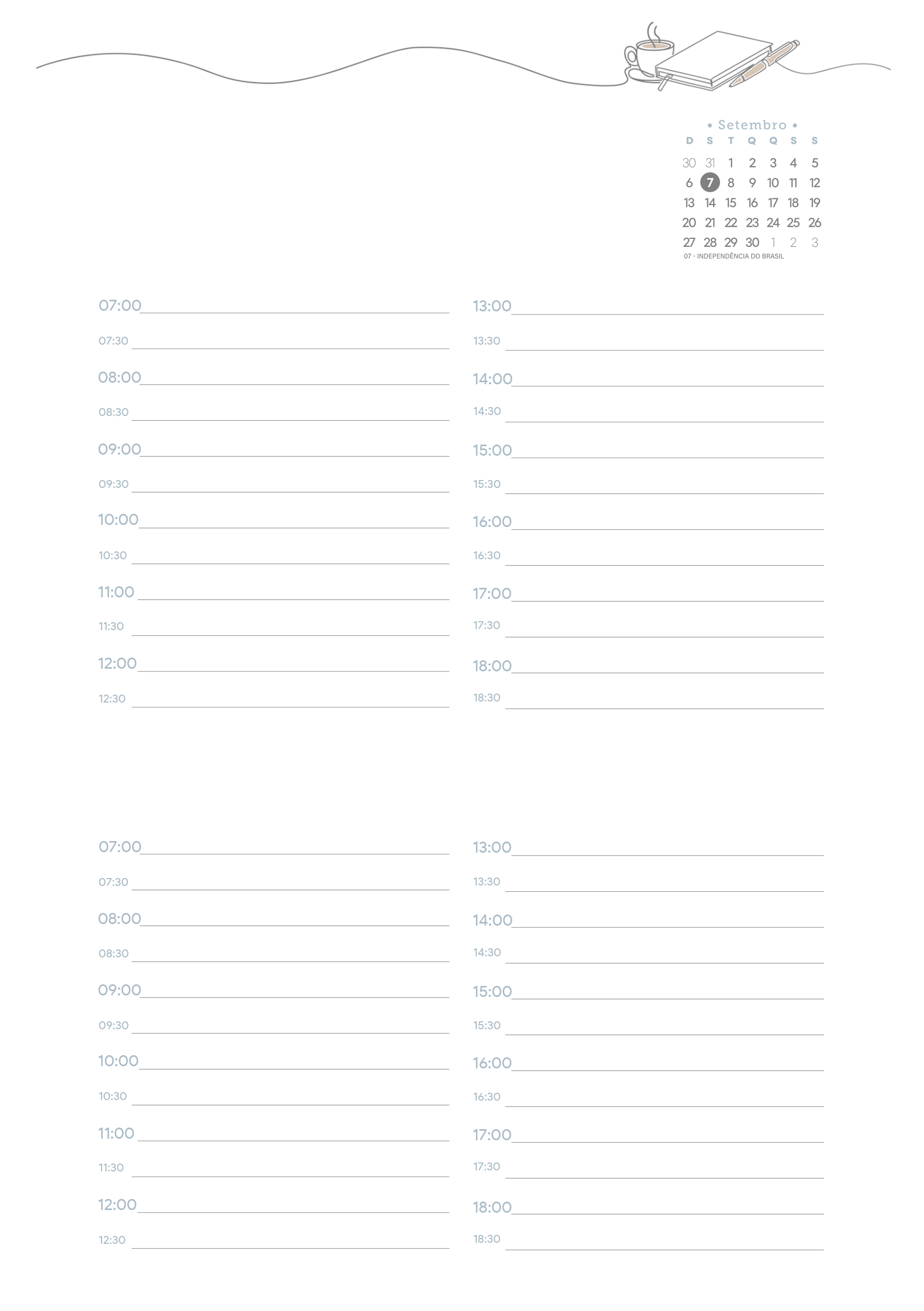 Planner Tons Pasteis Setembro Miolo Agenda Sabado e Domingo Por Aline Gasda - dez 21, 2025 - 0 Comentários - 1 min. leitura Baixar imagemPlanner Tons Pasteis Setembro Miolo Agenda Sabado e DomingoVocê também pode gostar de... Planner Stitch 2026 – Grátis para Imprimir Planner Capivara 2026 – Grátis para Imprimir Planner Colorido 2026 para Imprimir – Download Grátis Planner 2026 para Imprimir Grátis Planner Hello Kitty 2026 – Grátis para Imprimir Planner Professor 2025 – Arquivo Digital – Download Grátis Aline Gasda Sócia fundadora, professora, apaixonada pela alegria mágica e contagiante do sorriso de uma criança. COMPARTILHE: Facebook WhatsApp WhatsApp Assinar blog por e-mailDigite seu endereço de e-mail para assinar este blog e receber notificações de novas publicações por e-mail. Endereço de e-mail Assinar Pesquisar por: Publicidade