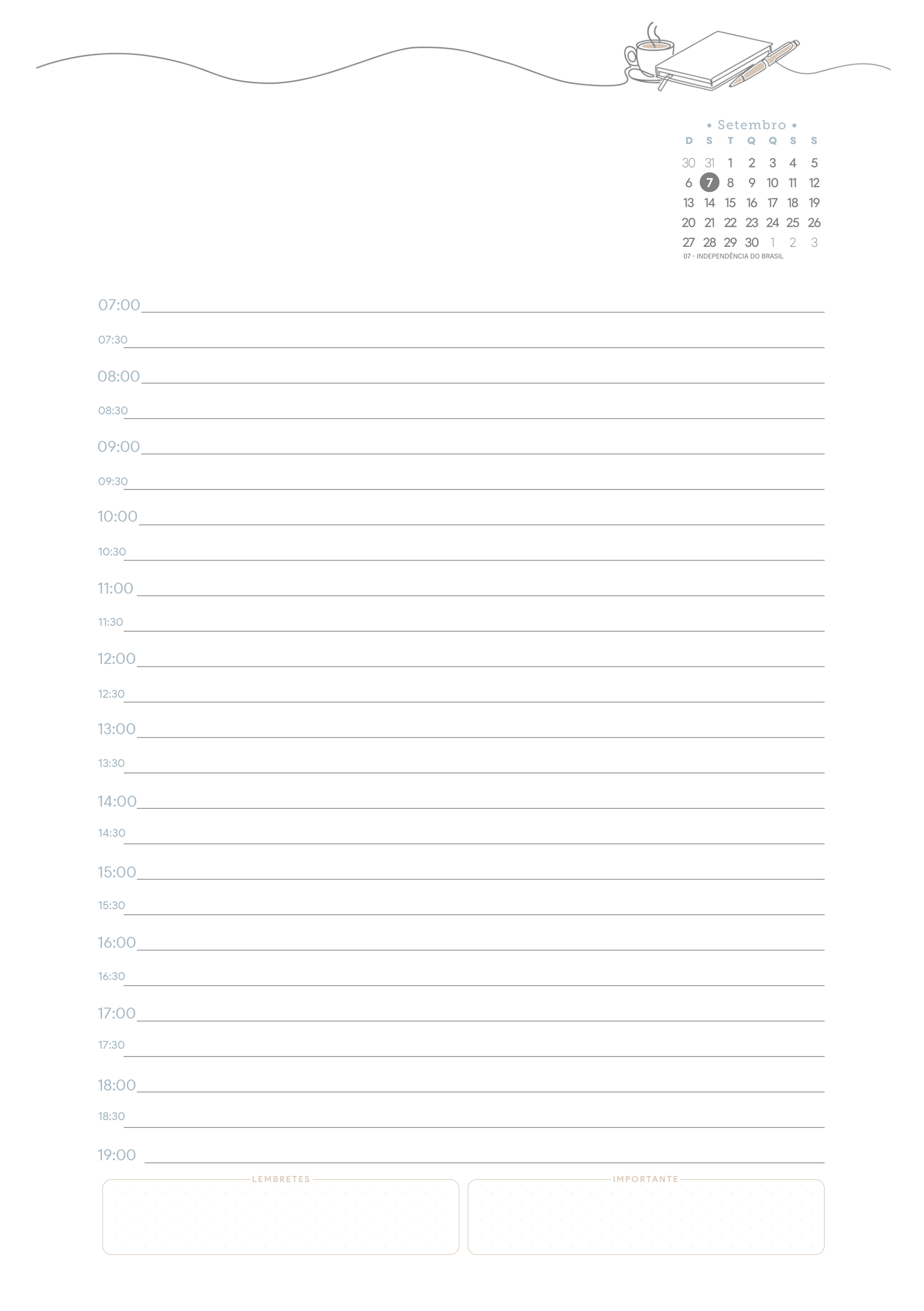 Planner Tons Pasteis Setembro Miolo Agenda Por Aline Gasda - dez 21, 2025 - 0 Comentários - 1 min. leitura Baixar imagemPlanner Tons Pasteis Setembro Miolo AgendaVocê também pode gostar de... Planner Stitch 2026 – Grátis para Imprimir Planner Capivara 2026 – Grátis para Imprimir Planner Colorido 2026 para Imprimir – Download Grátis Planner 2026 para Imprimir Grátis Planner Hello Kitty 2026 – Grátis para Imprimir Planner Professor 2025 – Arquivo Digital – Download Grátis Aline Gasda Sócia fundadora, professora, apaixonada pela alegria mágica e contagiante do sorriso de uma criança. COMPARTILHE: Facebook WhatsApp WhatsApp Assinar blog por e-mailDigite seu endereço de e-mail para assinar este blog e receber notificações de novas publicações por e-mail. Endereço de e-mail Assinar Pesquisar por: Publicidade