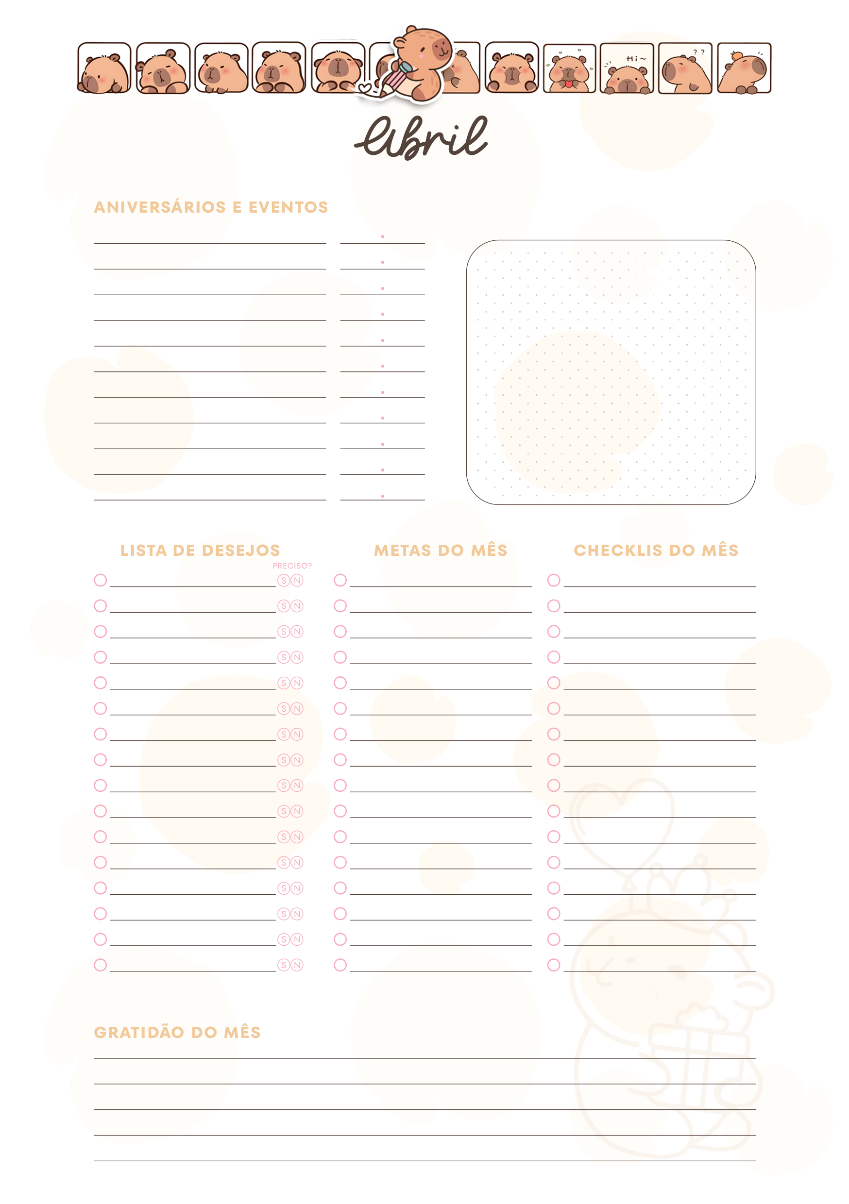 Calendario Mensal Permanente Abril Planner Capivara Por Aline Gasda - jan 5, 2026 - 0 Comentários - 1 min. leitura Baixar imagemCalendario Mensal Permanente Abril Planner CapivaraVocê também pode gostar de... Planner Colorido 2026 para Imprimir – Download Grátis Planner Tons Pastéis 2026 – Grátis para Imprimir Planner 2026 para Imprimir Grátis Planner Hello Kitty 2026 – Grátis para Imprimir Planner Professor 2025 – Arquivo Digital – Download Grátis Planner 2025 Xadrez Minimalista para Imprimir – Download Grátis Aline Gasda Sócia fundadora, professora, apaixonada pela alegria mágica e contagiante do sorriso de uma criança. COMPARTILHE: Facebook WhatsApp WhatsApp Assinar blog por e-mailDigite seu endereço de e-mail para assinar este blog e receber notificações de novas publicações por e-mail. Endereço de e-mail Assinar Pesquisar por: Publicidade