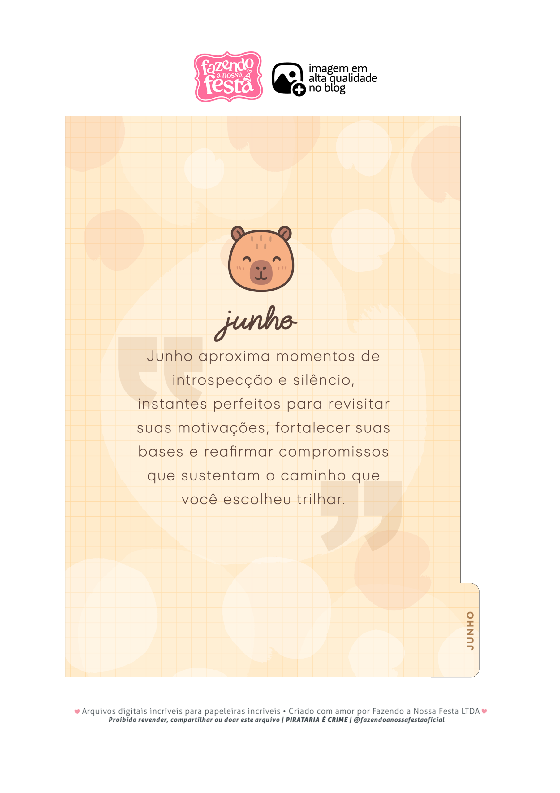 Capa de JUNHO Planner Capivara Por Aline Gasda - jan 5, 2026 - 0 Comentários - 1 min. leitura Baixar imagemCapa de JUNHO Planner CapivaraVocê também pode gostar de... Planner Colorido 2026 para Imprimir – Download Grátis Planner Tons Pastéis 2026 – Grátis para Imprimir Planner 2026 para Imprimir Grátis Planner Hello Kitty 2026 – Grátis para Imprimir Planner Professor 2025 – Arquivo Digital – Download Grátis Planner 2025 Xadrez Minimalista para Imprimir – Download Grátis Aline Gasda Sócia fundadora, professora, apaixonada pela alegria mágica e contagiante do sorriso de uma criança. COMPARTILHE: Facebook WhatsApp WhatsApp Assinar blog por e-mailDigite seu endereço de e-mail para assinar este blog e receber notificações de novas publicações por e-mail. Endereço de e-mail Assinar Pesquisar por: Publicidade