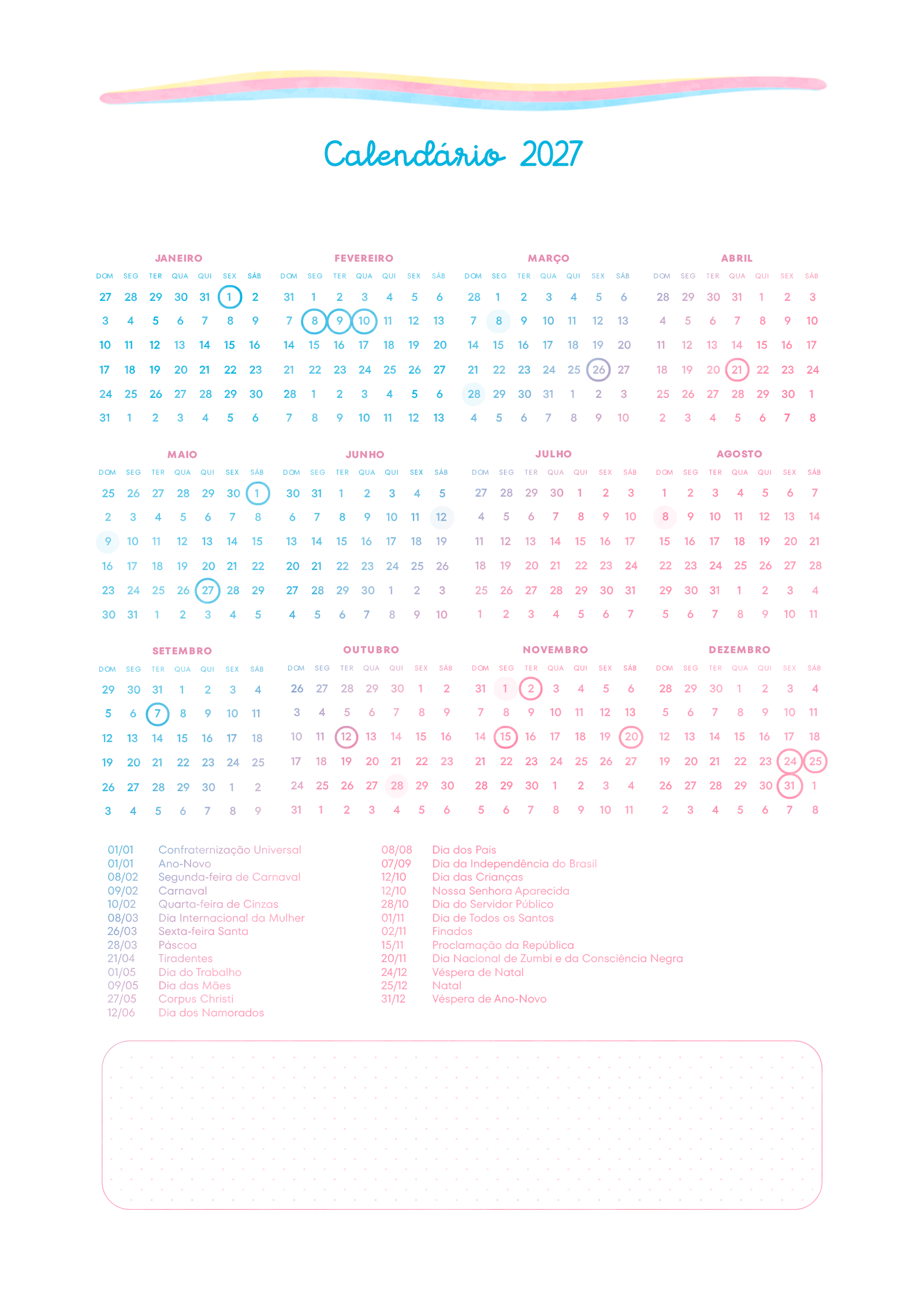 Calendario 2027 Planner Colorido 2026 Por Aline Gasda - jan 2, 2026 - 0 Comentários - 1 min. leitura Baixar imagemCalendario 2027 Planner Colorido 2026Você também pode gostar de... Planner Tons Pastéis 2026 – Grátis para Imprimir Planner 2026 para Imprimir Grátis Planner Hello Kitty 2026 – Grátis para Imprimir Planner Professor 2025 – Arquivo Digital – Download Grátis Planner 2025 Xadrez Minimalista para Imprimir – Download Grátis Planner Autismo 2025 – Modelo Grátis + 100 páginas! Aline Gasda Sócia fundadora, professora, apaixonada pela alegria mágica e contagiante do sorriso de uma criança. COMPARTILHE: Facebook WhatsApp WhatsApp Assinar blog por e-mailDigite seu endereço de e-mail para assinar este blog e receber notificações de novas publicações por e-mail. Endereço de e-mail Assinar Pesquisar por: Publicidade