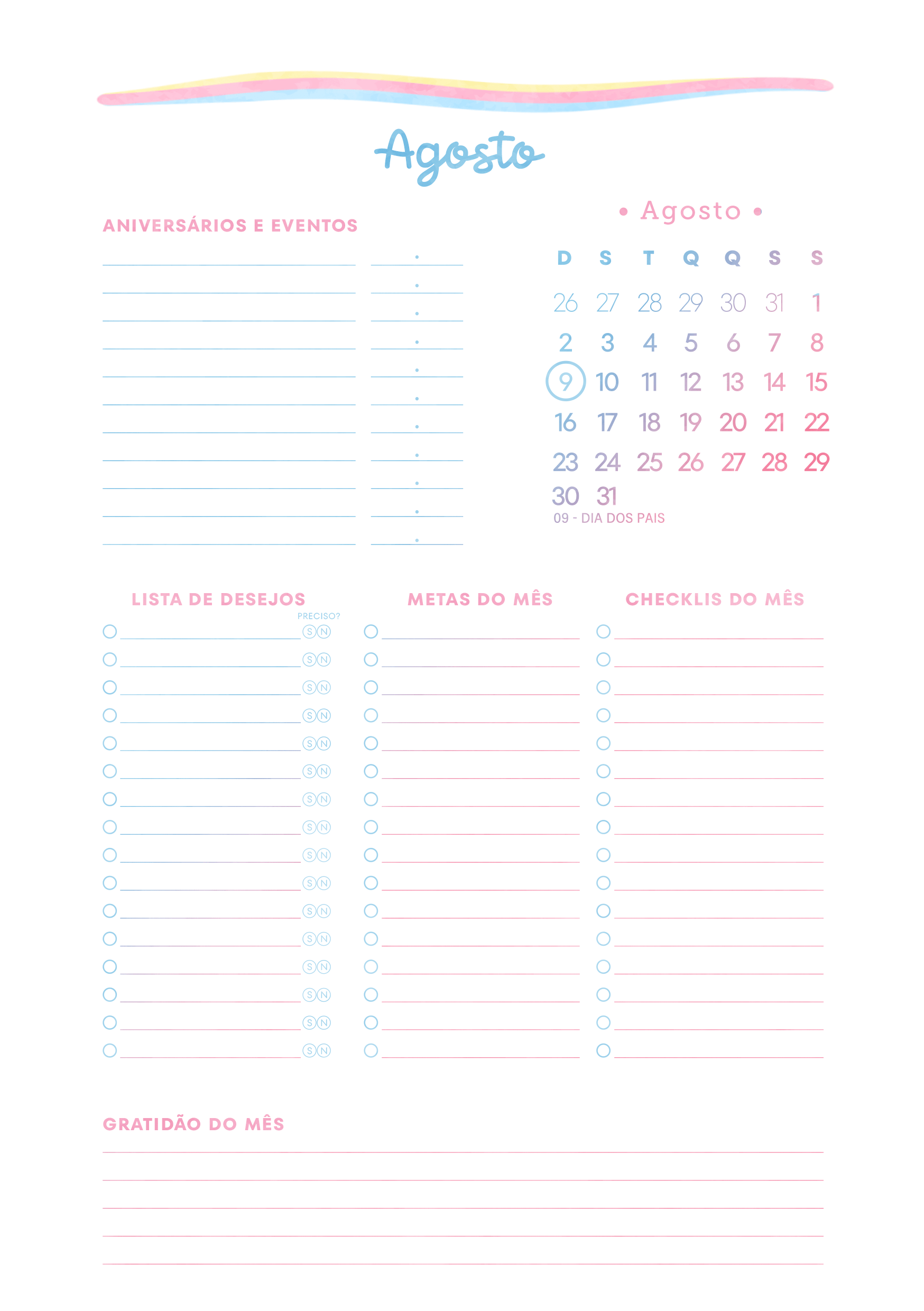 Calendario Mensal Agosto Planner Colorido 2026 Por Aline Gasda - jan 2, 2026 - 0 Comentários - 1 min. leitura Baixar imagemCalendario Mensal Agosto Planner Colorido 2026Você também pode gostar de... Planner Tons Pastéis 2026 – Grátis para Imprimir Planner 2026 para Imprimir Grátis Planner Hello Kitty 2026 – Grátis para Imprimir Planner Professor 2025 – Arquivo Digital – Download Grátis Planner 2025 Xadrez Minimalista para Imprimir – Download Grátis Planner Autismo 2025 – Modelo Grátis + 100 páginas! Aline Gasda Sócia fundadora, professora, apaixonada pela alegria mágica e contagiante do sorriso de uma criança. COMPARTILHE: Facebook WhatsApp WhatsApp Assinar blog por e-mailDigite seu endereço de e-mail para assinar este blog e receber notificações de novas publicações por e-mail. Endereço de e-mail Assinar Pesquisar por: Publicidade