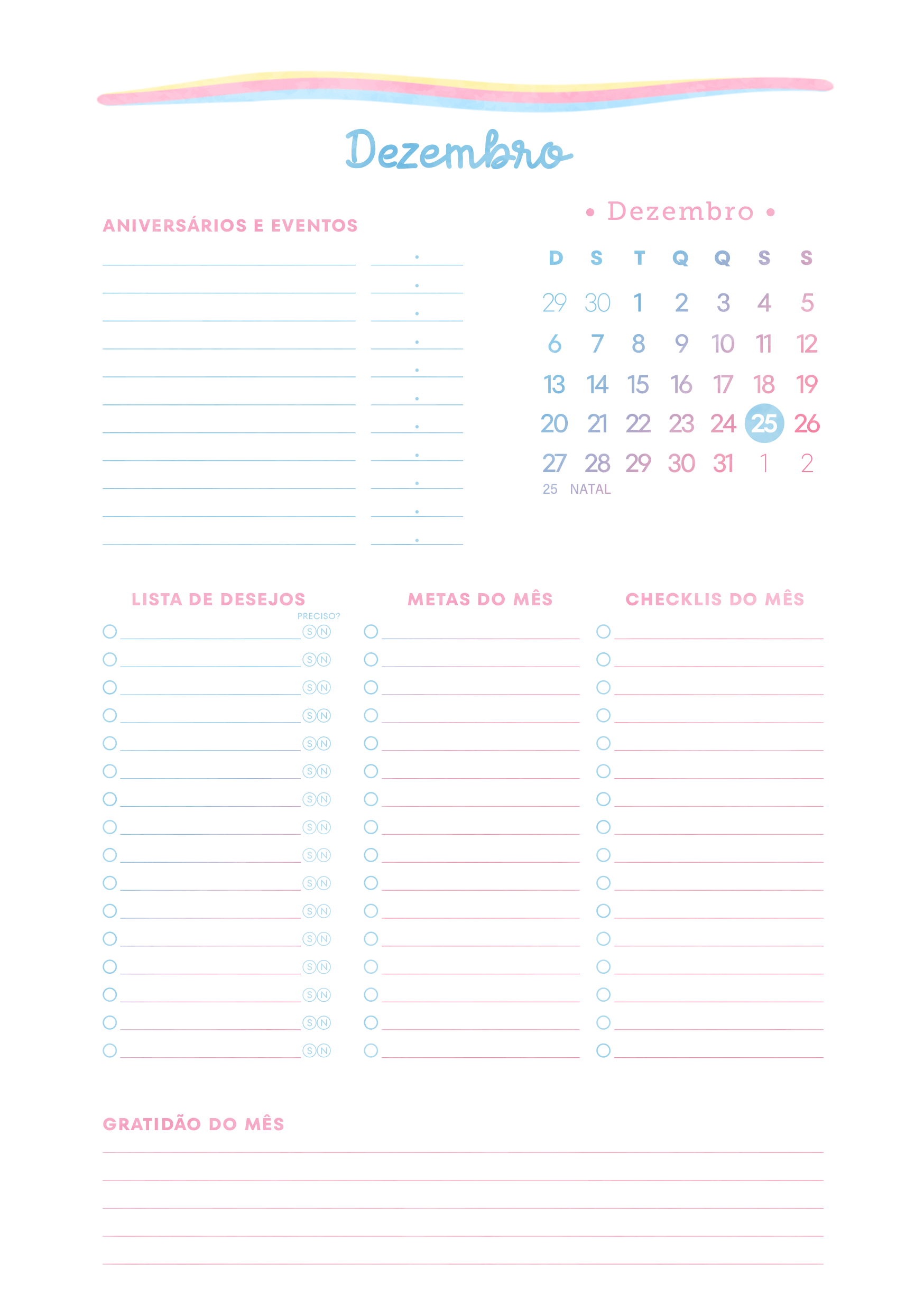 Calendario Mensal Dezembro Planner Colorido 2026 Por Aline Gasda - jan 2, 2026 - 0 Comentários - 1 min. leitura Baixar imagemCalendario Mensal Dezembro Planner Colorido 2026Você também pode gostar de... Planner Tons Pastéis 2026 – Grátis para Imprimir Planner 2026 para Imprimir Grátis Planner Hello Kitty 2026 – Grátis para Imprimir Planner Professor 2025 – Arquivo Digital – Download Grátis Planner 2025 Xadrez Minimalista para Imprimir – Download Grátis Planner Autismo 2025 – Modelo Grátis + 100 páginas! Aline Gasda Sócia fundadora, professora, apaixonada pela alegria mágica e contagiante do sorriso de uma criança. COMPARTILHE: Facebook WhatsApp WhatsApp Assinar blog por e-mailDigite seu endereço de e-mail para assinar este blog e receber notificações de novas publicações por e-mail. Endereço de e-mail Assinar Pesquisar por: Publicidade