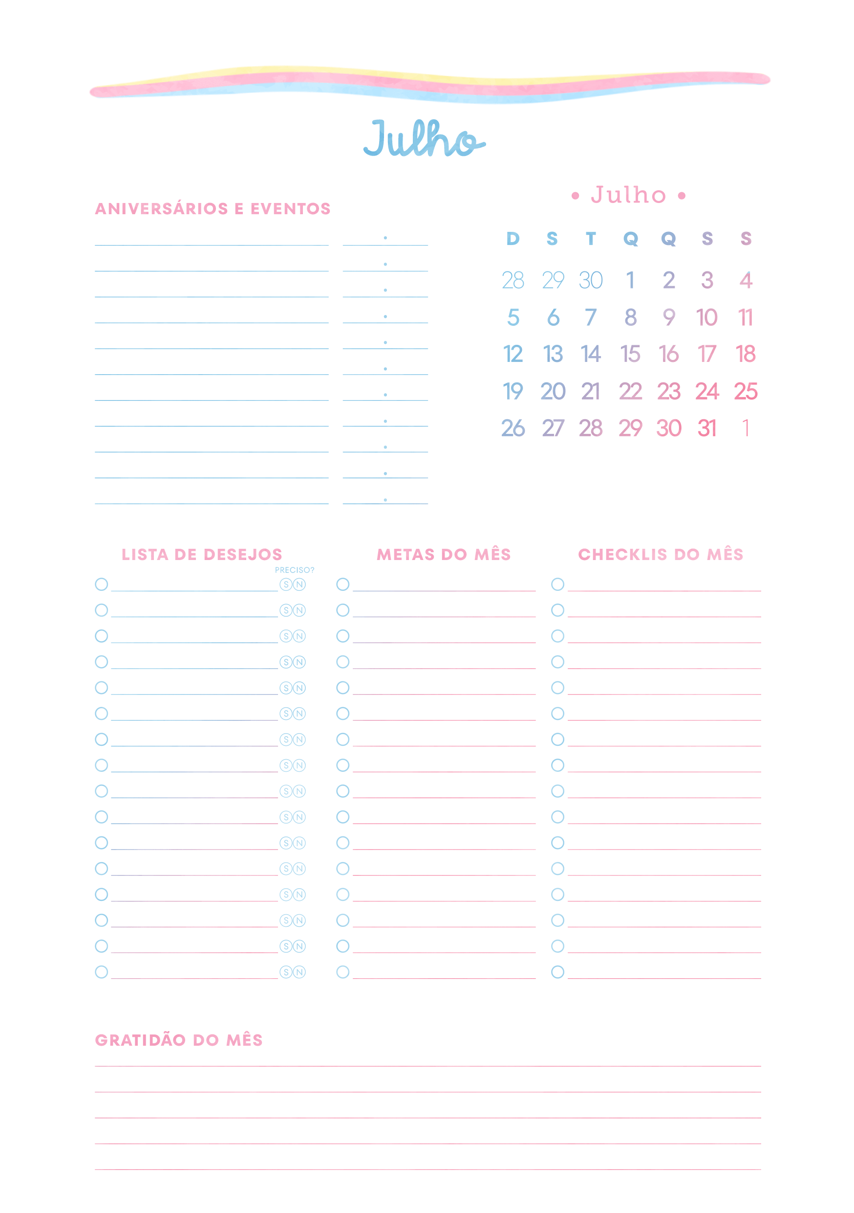 Calendario Mensal Julho Planner Colorido 2026 Por Aline Gasda - jan 2, 2026 - 0 Comentários - 1 min. leitura Baixar imagemCalendario Mensal Julho Planner Colorido 2026Você também pode gostar de... Planner Tons Pastéis 2026 – Grátis para Imprimir Planner 2026 para Imprimir Grátis Planner Hello Kitty 2026 – Grátis para Imprimir Planner Professor 2025 – Arquivo Digital – Download Grátis Planner 2025 Xadrez Minimalista para Imprimir – Download Grátis Planner Autismo 2025 – Modelo Grátis + 100 páginas! Aline Gasda Sócia fundadora, professora, apaixonada pela alegria mágica e contagiante do sorriso de uma criança. COMPARTILHE: Facebook WhatsApp WhatsApp Assinar blog por e-mailDigite seu endereço de e-mail para assinar este blog e receber notificações de novas publicações por e-mail. Endereço de e-mail Assinar Pesquisar por: Publicidade
