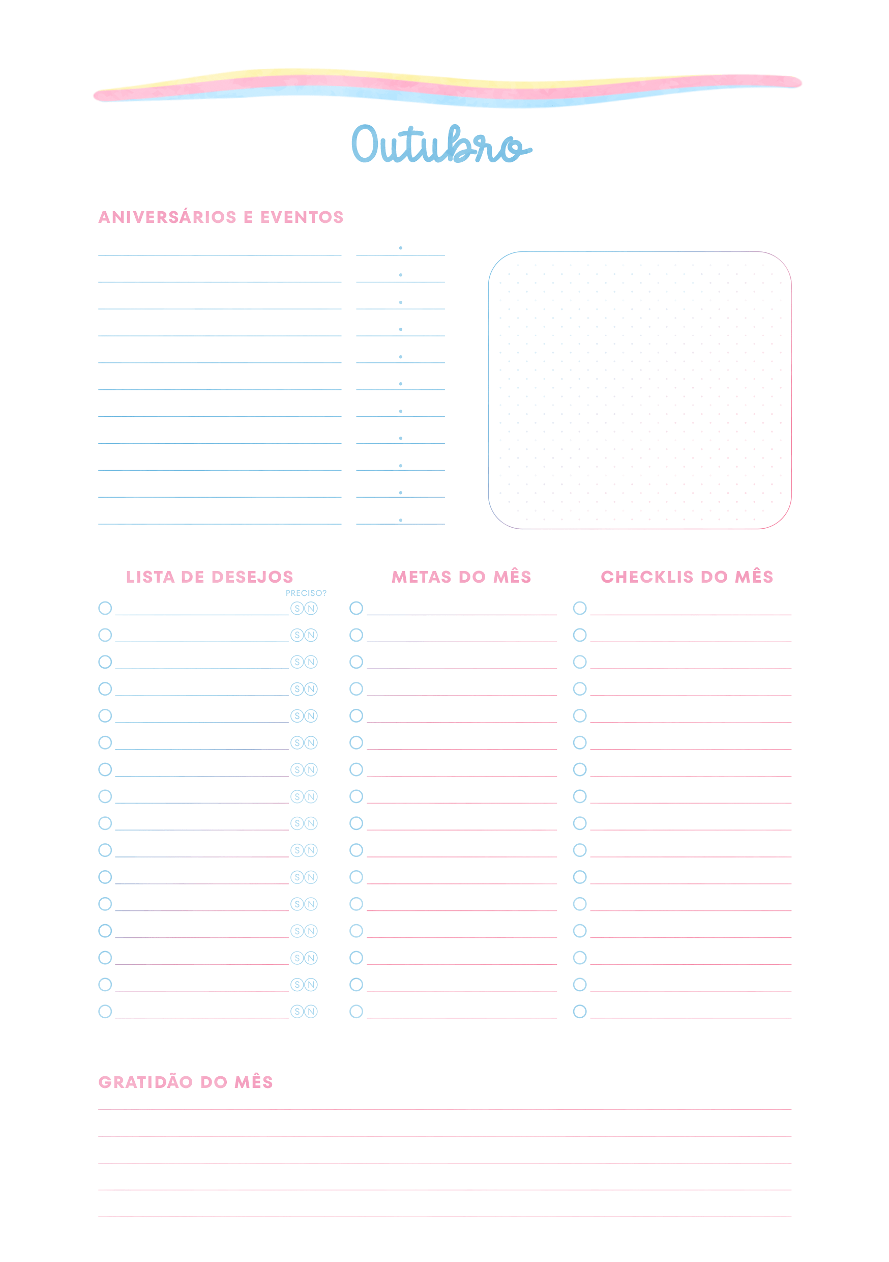 Calendario Mensal Permanente Outubro Planner Colorido 2026 Por Aline Gasda - jan 2, 2026 - 0 Comentários - 1 min. leitura Baixar imagemCalendario Mensal Permanente Outubro Planner Colorido 2026Você também pode gostar de... Planner Tons Pastéis 2026 – Grátis para Imprimir Planner 2026 para Imprimir Grátis Planner Hello Kitty 2026 – Grátis para Imprimir Planner Professor 2025 – Arquivo Digital – Download Grátis Planner 2025 Xadrez Minimalista para Imprimir – Download Grátis Planner Autismo 2025 – Modelo Grátis + 100 páginas! Aline Gasda Sócia fundadora, professora, apaixonada pela alegria mágica e contagiante do sorriso de uma criança. COMPARTILHE: Facebook WhatsApp WhatsApp Assinar blog por e-mailDigite seu endereço de e-mail para assinar este blog e receber notificações de novas publicações por e-mail. Endereço de e-mail Assinar Pesquisar por: Publicidade