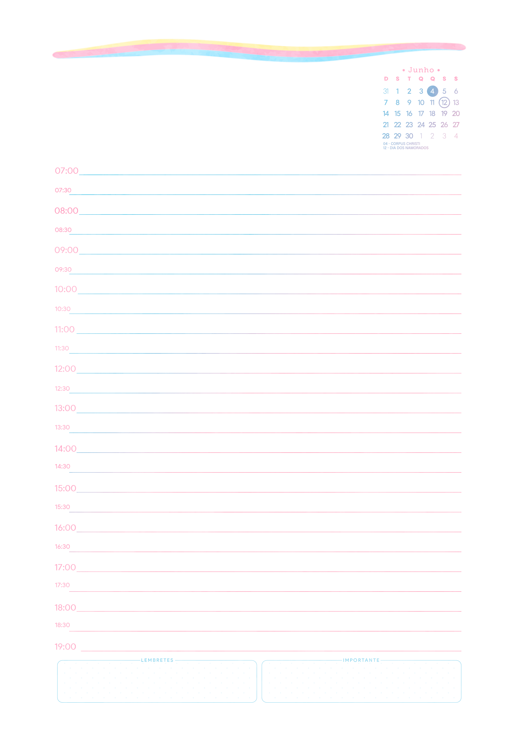 Junho Miolo Agenda Planner Colorido 2026 Por Aline Gasda - jan 2, 2026 -Atualizado em: jan 2, 2026 - 0 Comentários - 1 min. leitura Baixar imagemJunho Miolo Agenda Planner Colorido 2026Você também pode gostar de... Planner Tons Pastéis 2026 – Grátis para Imprimir Planner 2026 para Imprimir Grátis Planner Hello Kitty 2026 – Grátis para Imprimir Planner Professor 2025 – Arquivo Digital – Download Grátis Planner 2025 Xadrez Minimalista para Imprimir – Download Grátis Planner Autismo 2025 – Modelo Grátis + 100 páginas! Aline Gasda Sócia fundadora, professora, apaixonada pela alegria mágica e contagiante do sorriso de uma criança. COMPARTILHE: Facebook WhatsApp WhatsApp Assinar blog por e-mailDigite seu endereço de e-mail para assinar este blog e receber notificações de novas publicações por e-mail. Endereço de e-mail Assinar Pesquisar por: Publicidade